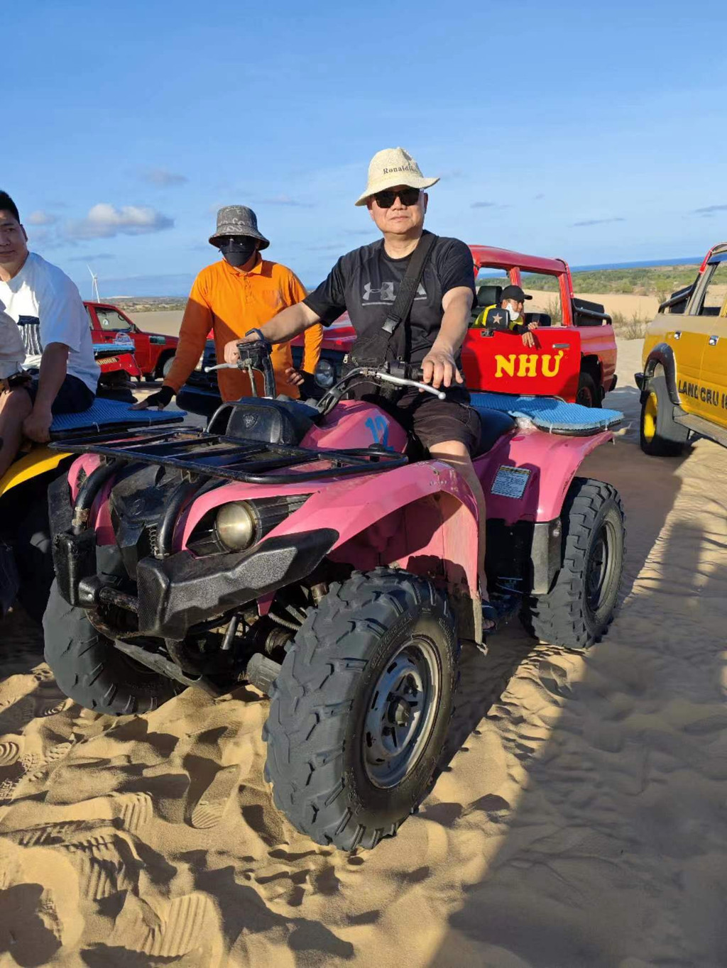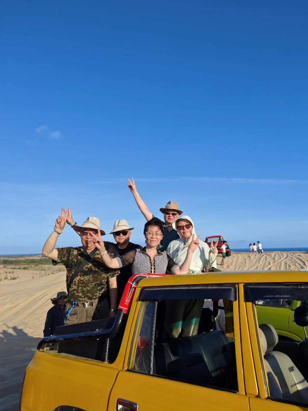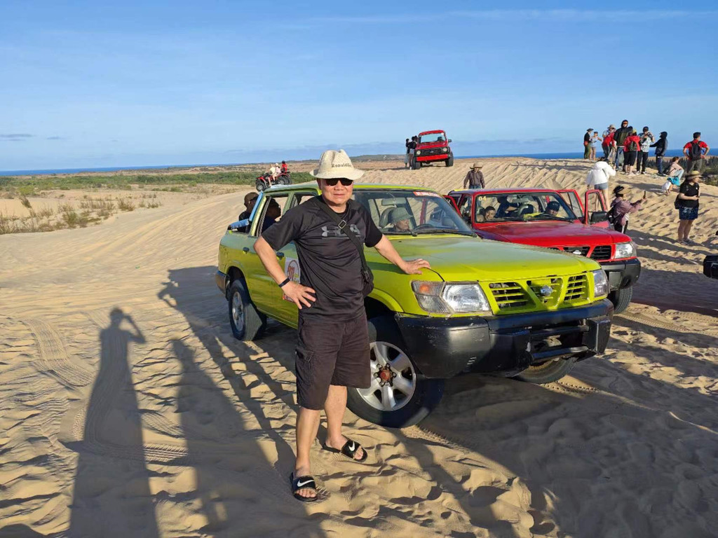 白沙丘里面的车有战地吉普和沙地摩托两种,报价是60万VND/人,可以自己开,也可以让景点的司机帮着开。 车子冲上沙漠的感觉非常刺激,非常值得一玩。