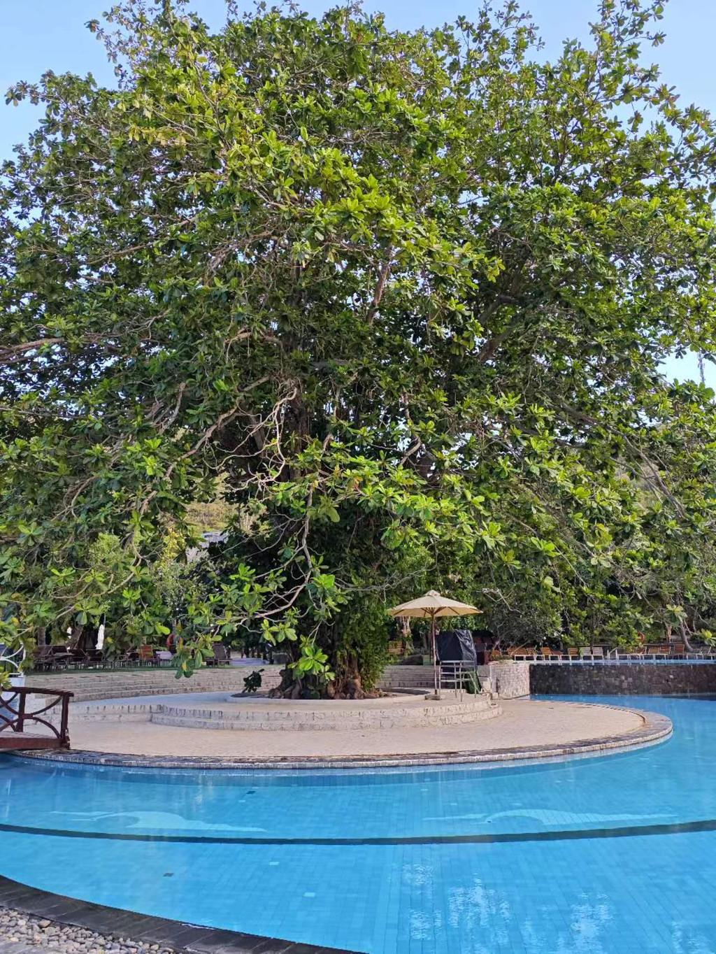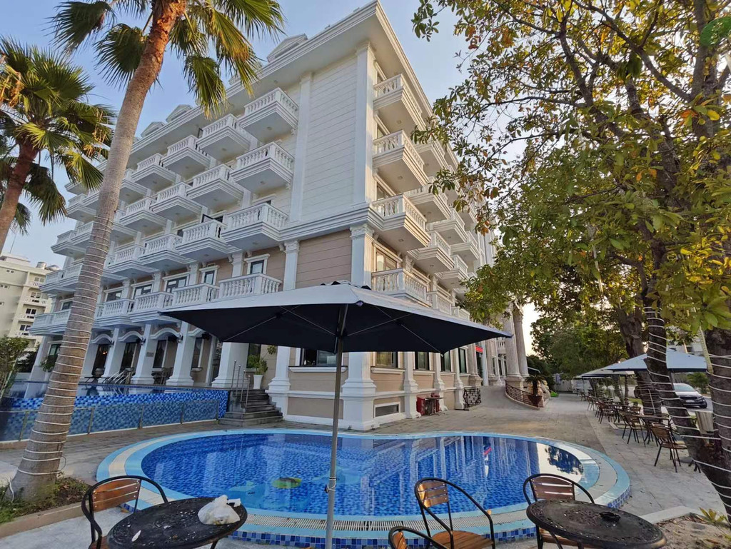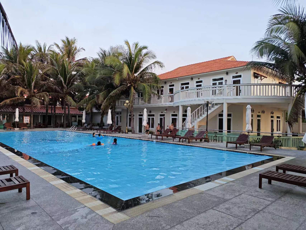 在入住靠海边的度假村,海浪拍岸,游池深蓝平静,环境幽雅,空气清新,真是和和美美!
