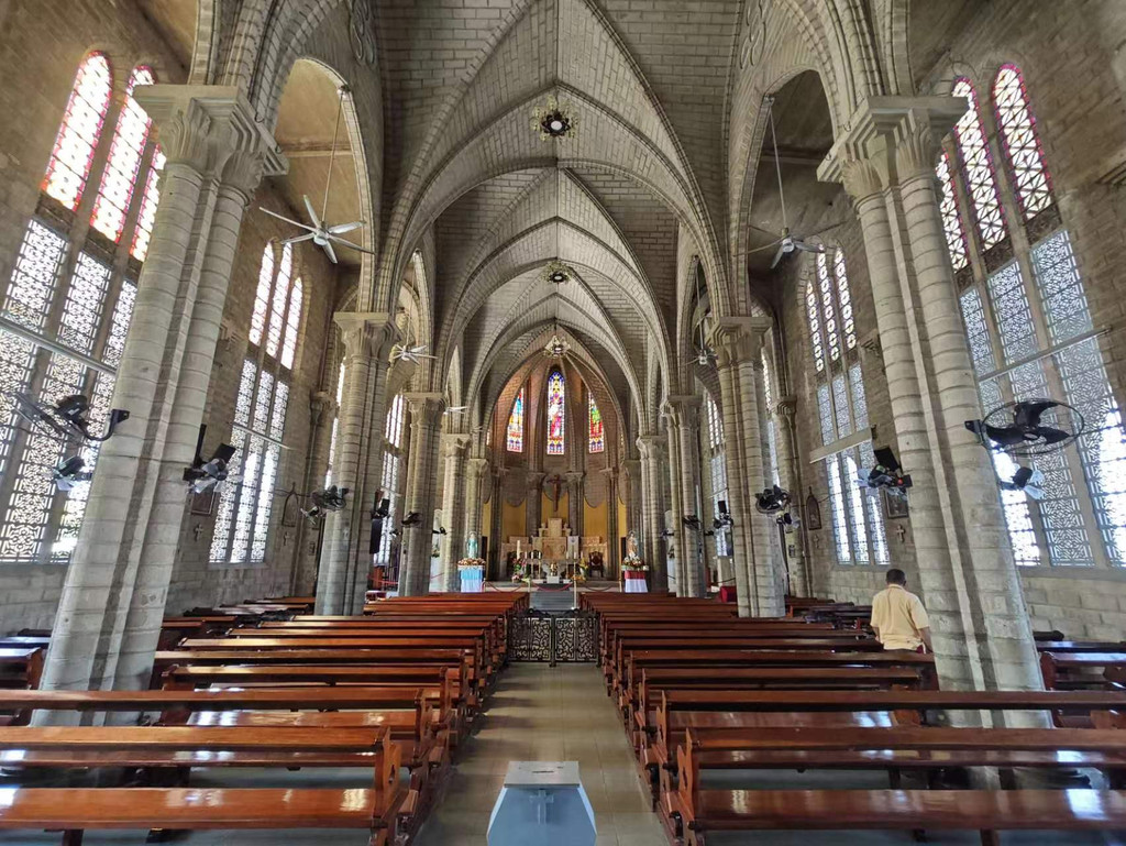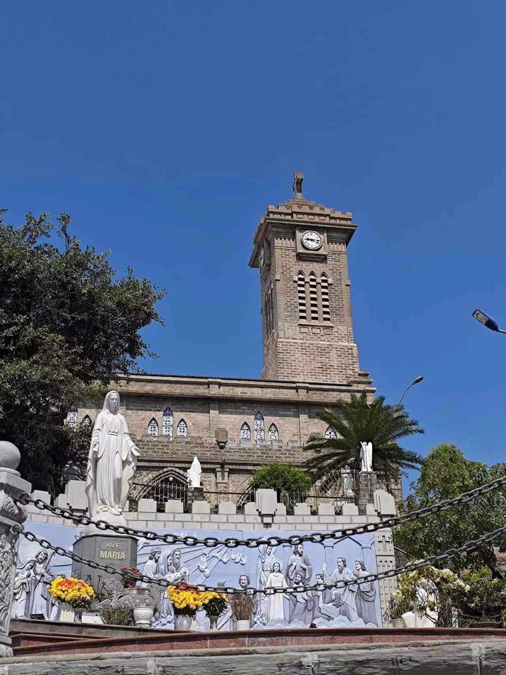 芽庄教堂是一座哥特式建筑,建于1928-1933年,很有法国味。整座教堂由石头建造,也没有过多装饰,内外都保留了纯色的石头颜色,显得尤为雄伟大气。