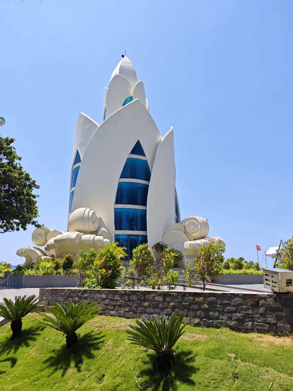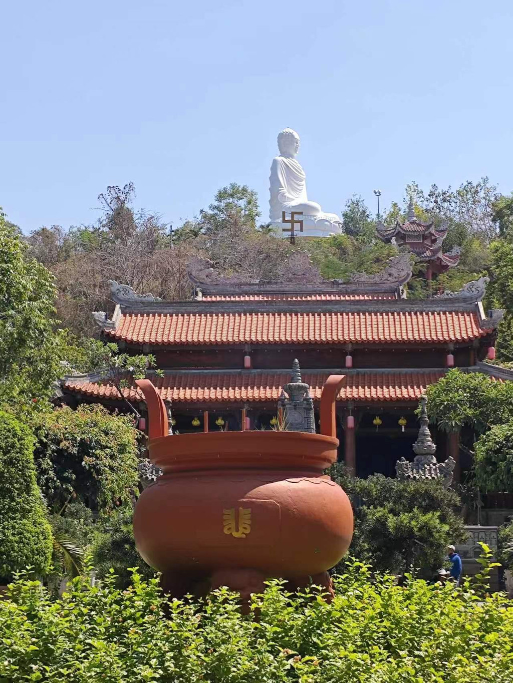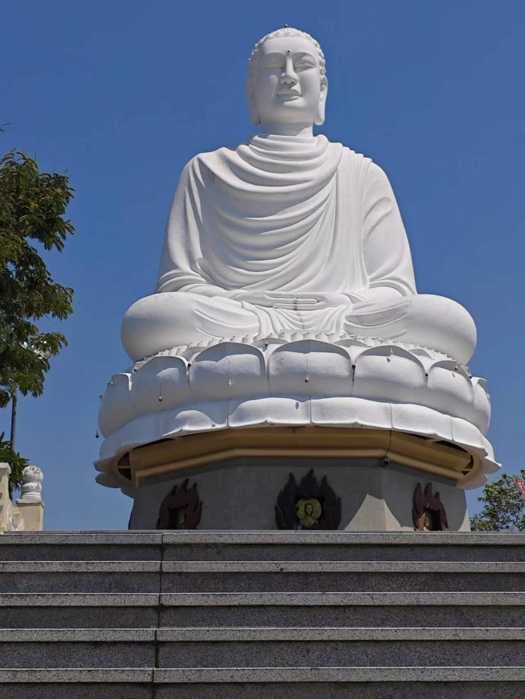 爬上后山的150级台阶,就会来到这一尊24米高的大佛前,在芽庄市区任何地方都能看见这座巨大的白色大佛。大佛安坐于莲花之上,俯视众生的欢乐与烦扰。