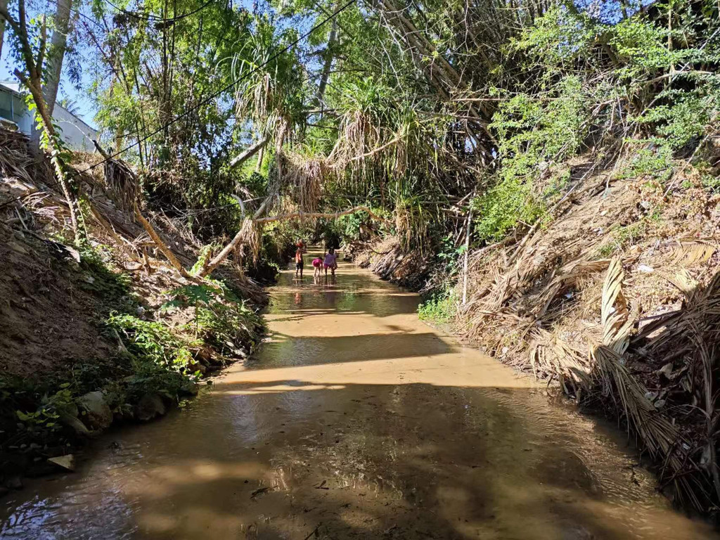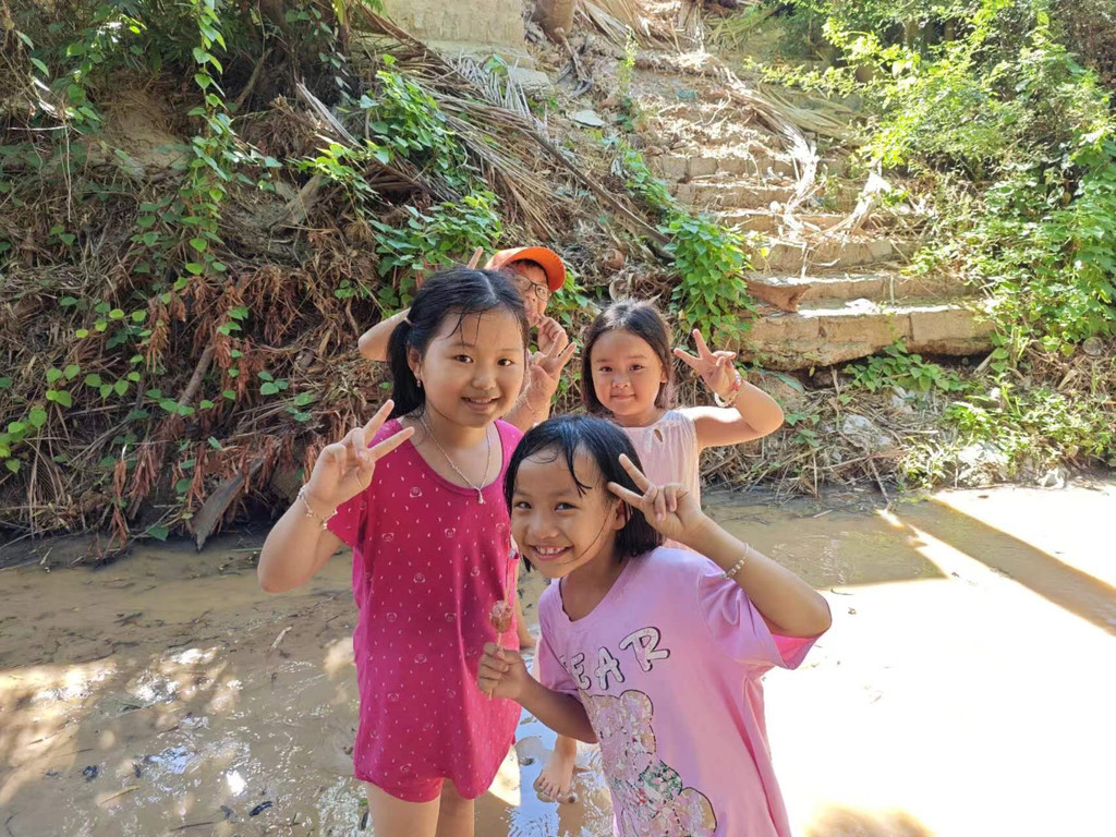 在仙女溪游玩的当地小朋友