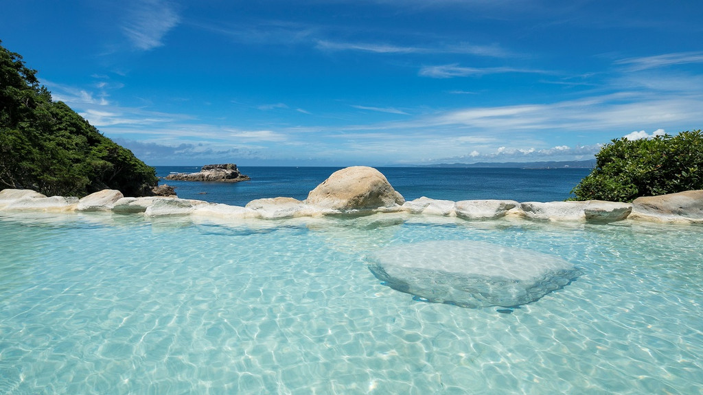 在舒适的海风中,享受泡在自然温泉露天浴池中的奢华时光。