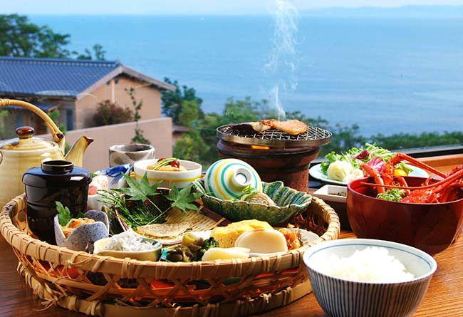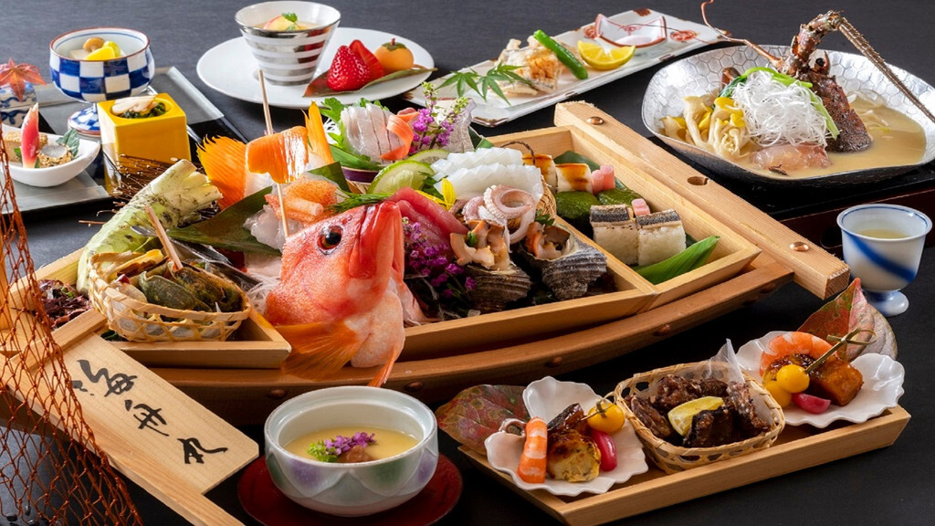 晚餐充满和歌山美食,让您尽情享受海鲜和山珍的搭配。冬季有被称为“幻之鱼”的鳕鱼,夏初到秋季有紀伊水道的鳠鱼,还有来自胜浦渔港的新鲜本鲔等,新鲜的食材琳琅满目。