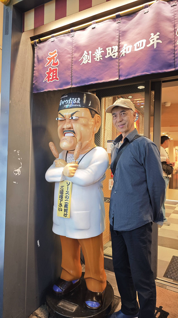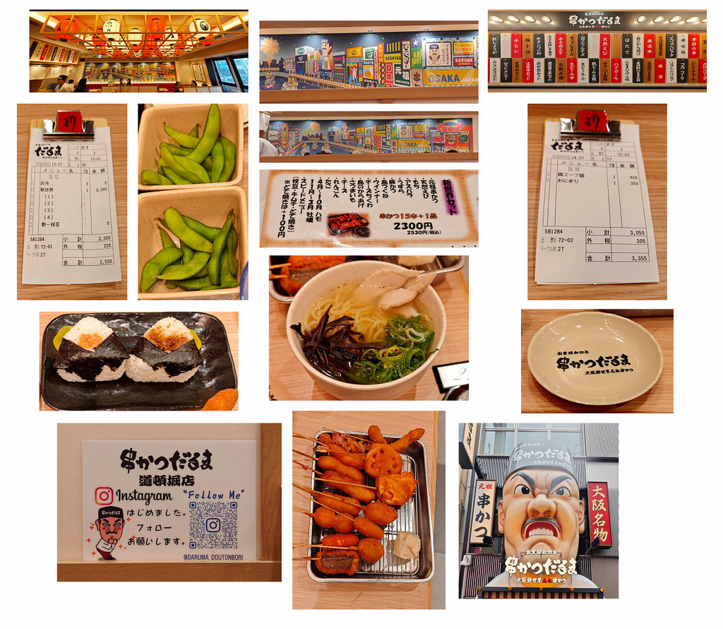 安顿后,已经13点多了,马上外出觅食(尽管还在下雨)。酒店就在道顿堀区,走路十多分钟就到最热闹的商业街。路过这家连锁店,它的特色是烧烤串,进去尝尝。
