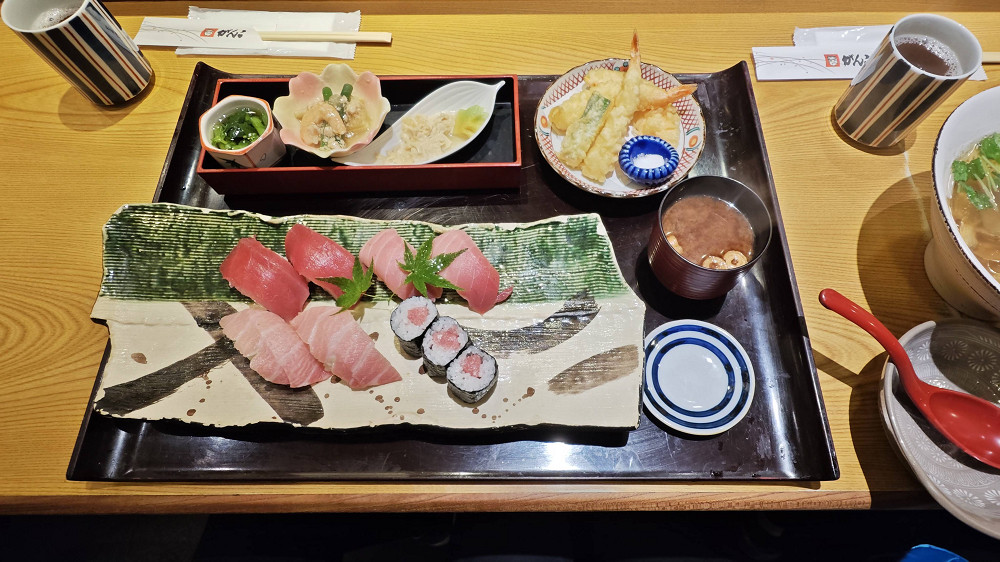 晚餐吃寿司,要金枪鱼寿司套餐带上等天妇罗+海鲜面。