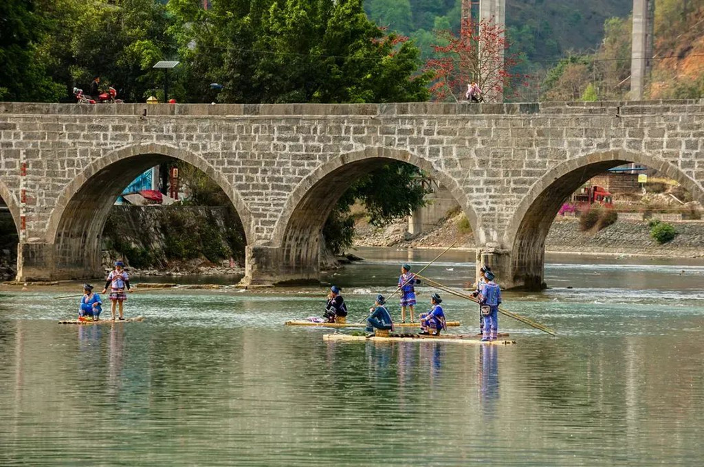 桑郎古迹星罗棋布,七星桥如长虹卧波,这座建于1823年的七孔石桥凝聚着先民智慧,桥水相映成画。此地文风鼎盛,清代便有韦清澜等文人吟咏“桑郎十景”,使其荣膺“贵州省诗词文化之乡”美誉。