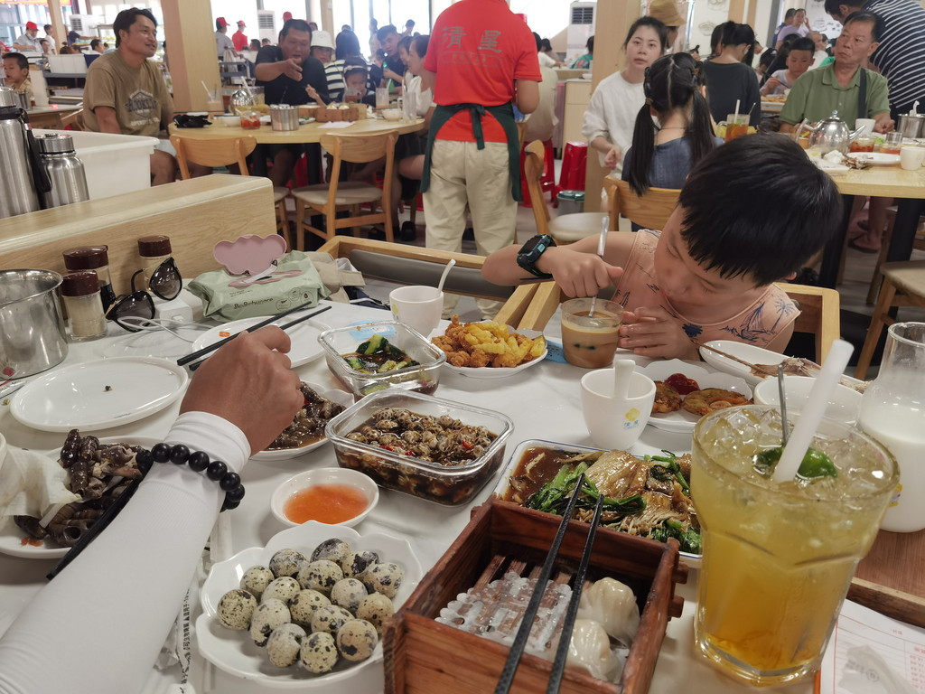 第二天行程行程很满,上午打卡酒店旁边的景点,午餐在文昌市区吃了老爸茶,挺有意思的,像广式茶饮的大排档,但是更加市井。好多本地人,就喝着冰饮,吃着菠萝包。边聊边吃,消磨时间,很是惬意。