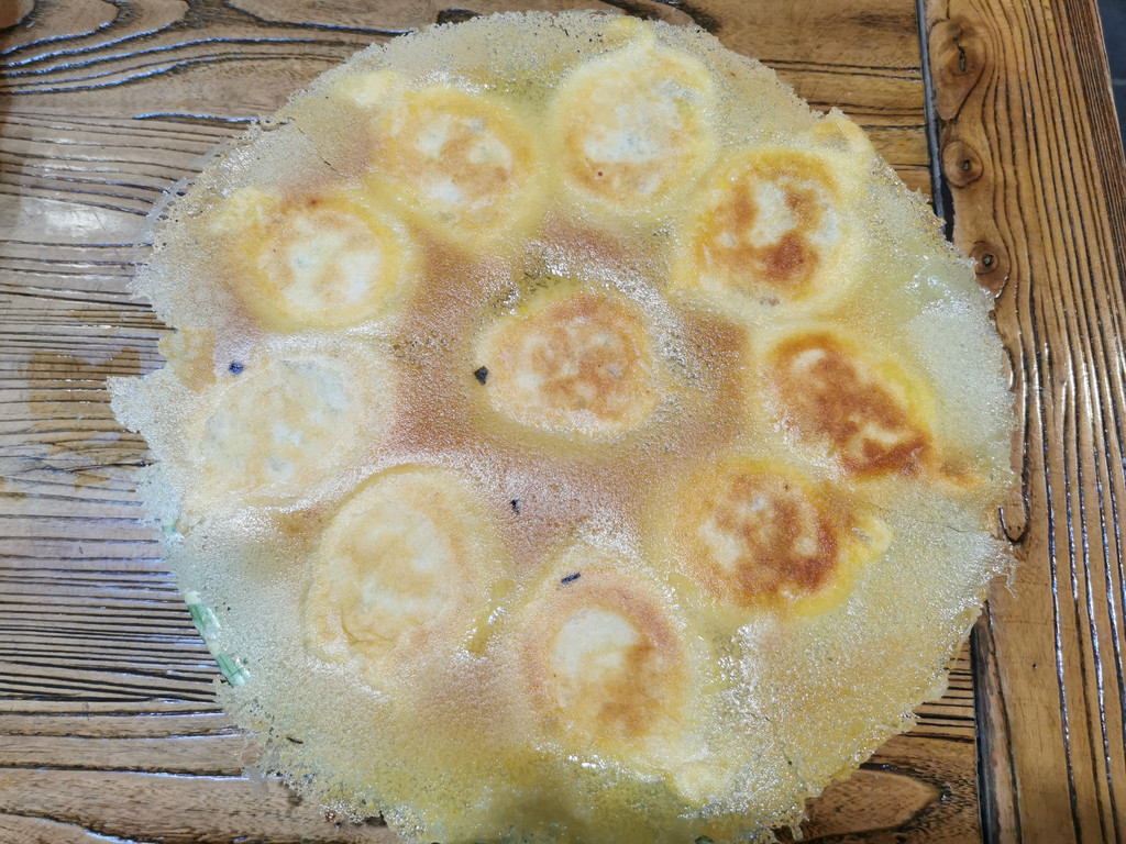 素三鲜煎包、端上桌,