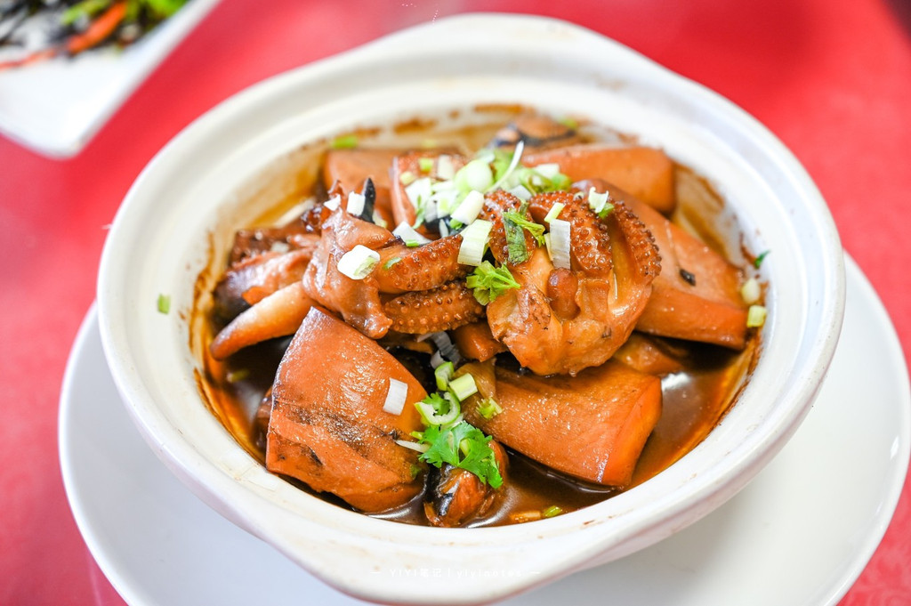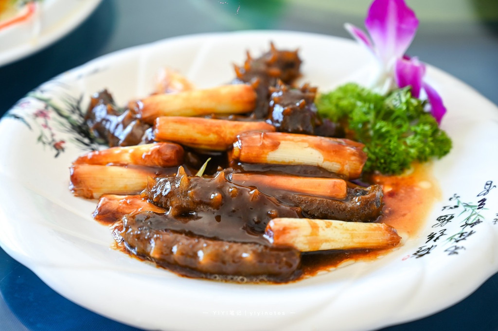 经典的鲁菜——葱烧海参也是来到 威海 必吃的美食。端上桌的一瞬间,酱香浓郁。海参吃起来爽滑Q弹,连葱段也完全的吸收了酱汁的鲜香,超级下饭。