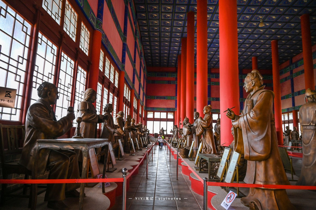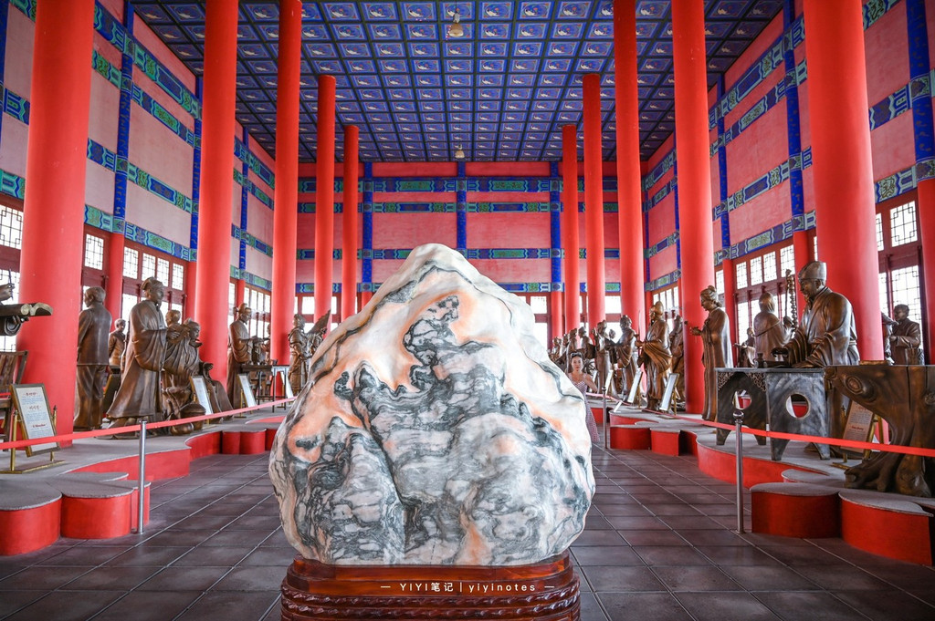 景区内融入了自然古迹、史料逸闻、神话传说等等为一体,开运殿、好运殿内还陈列着数百位中外伟人的雕像。