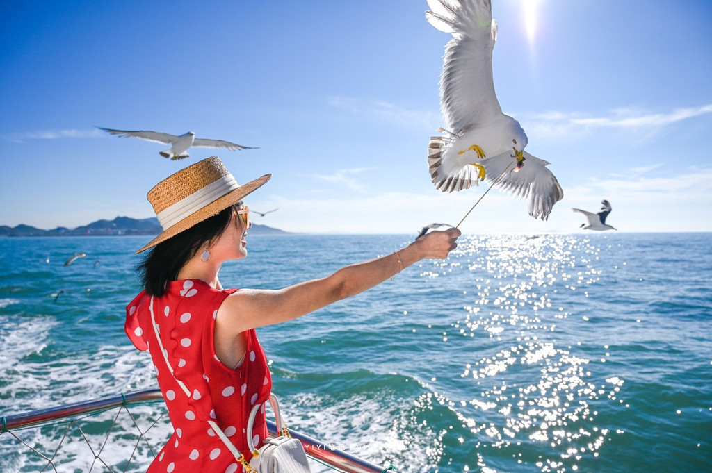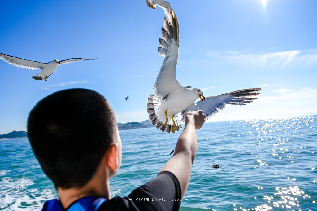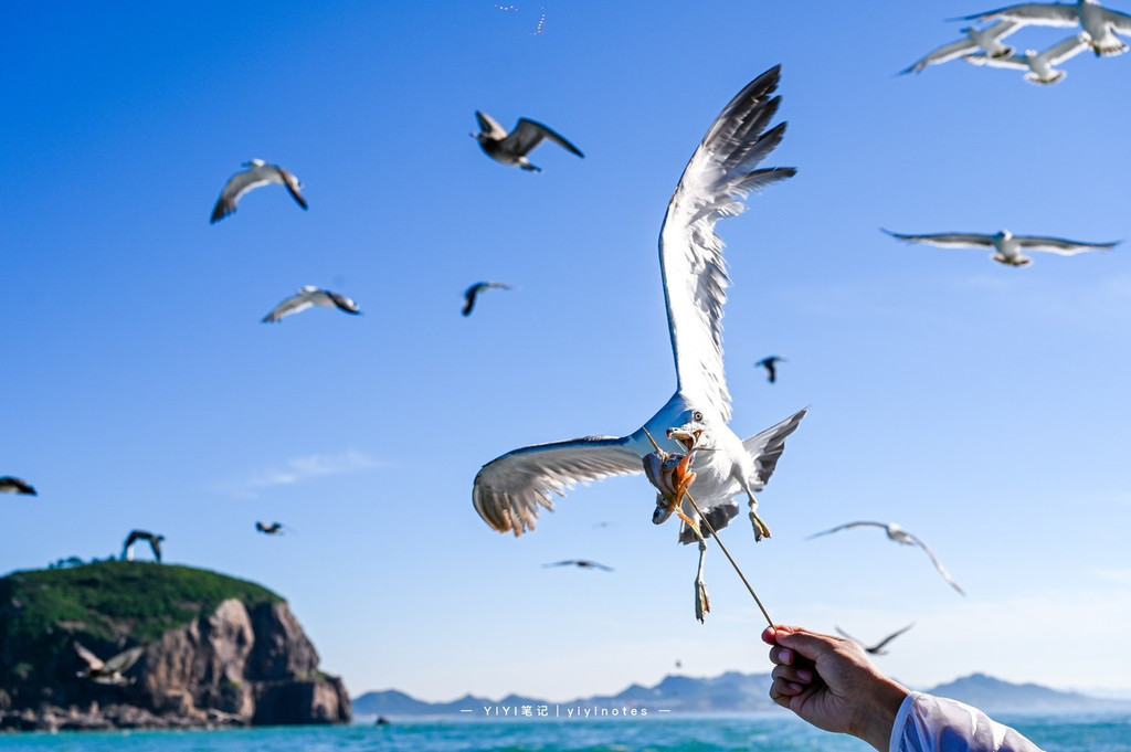 在船上就有卖小鱼,建议买上一盒鱼喂海鸥,绝对是非常难忘的体验。有10元到20元不等的小鱼,可以用竹签插着举起来,等待海鸥来觅食。