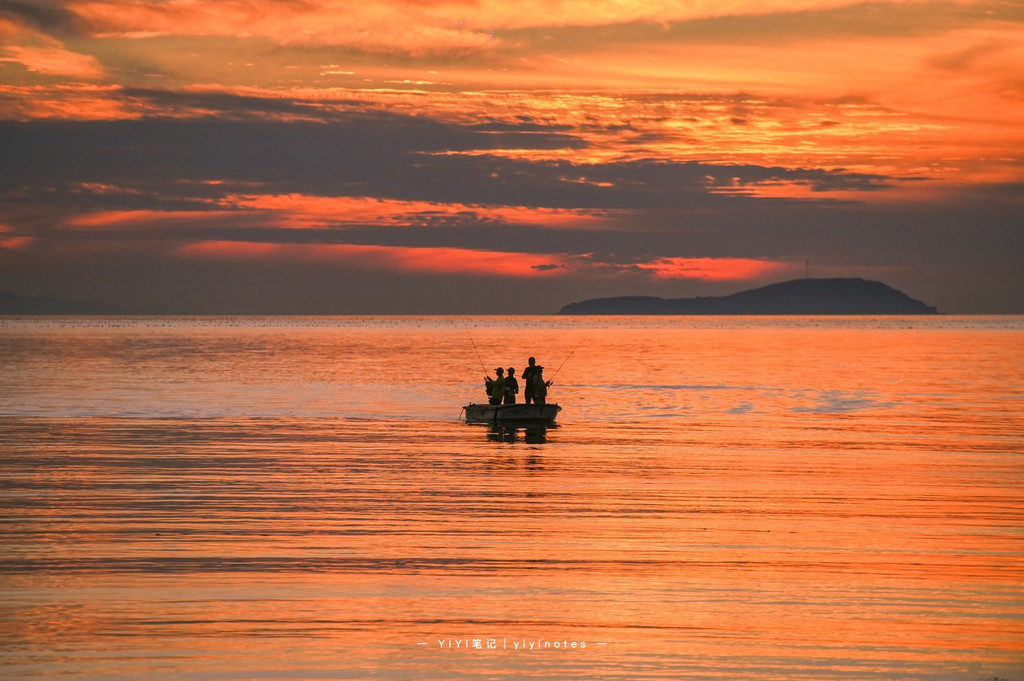 不远处,还有外出打捞的渔船总是满载而归。满天的彩霞映红了半边天,真希望这一刻可以一直停留。