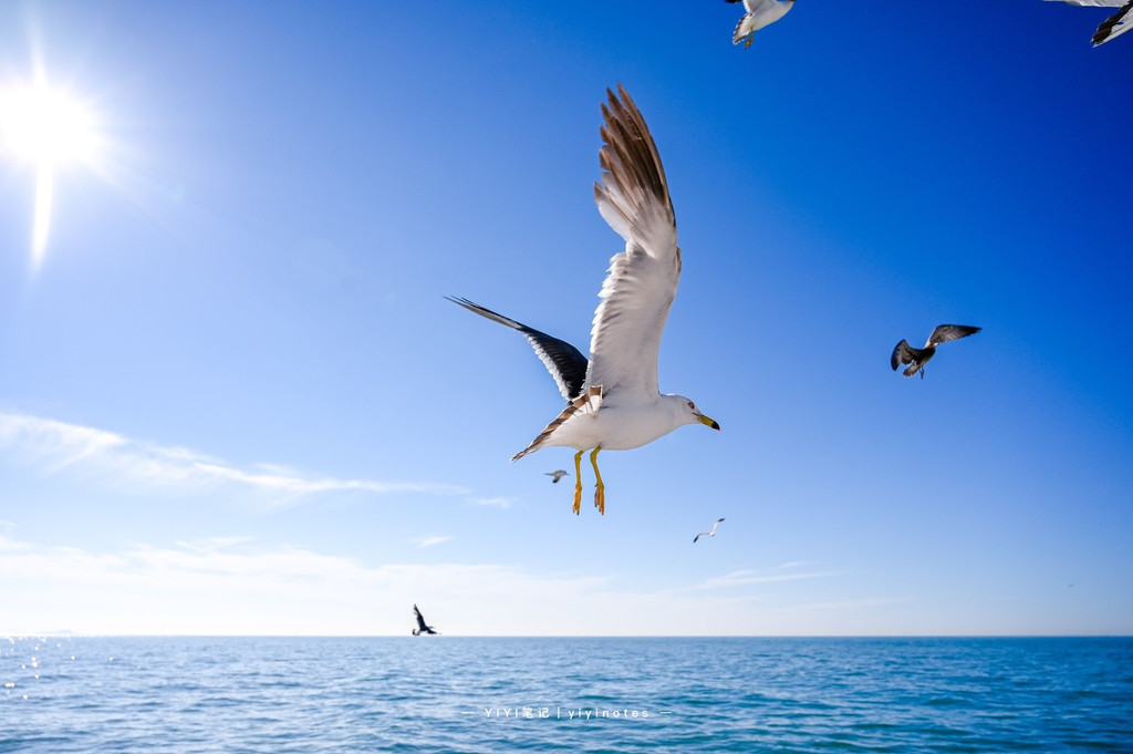 刚开始还会担心海鸥会咬到自己的手,但真正喂了知道它们已经习惯和人相处了,是不会咬人的,近距离的拍照留影也毫无问题。