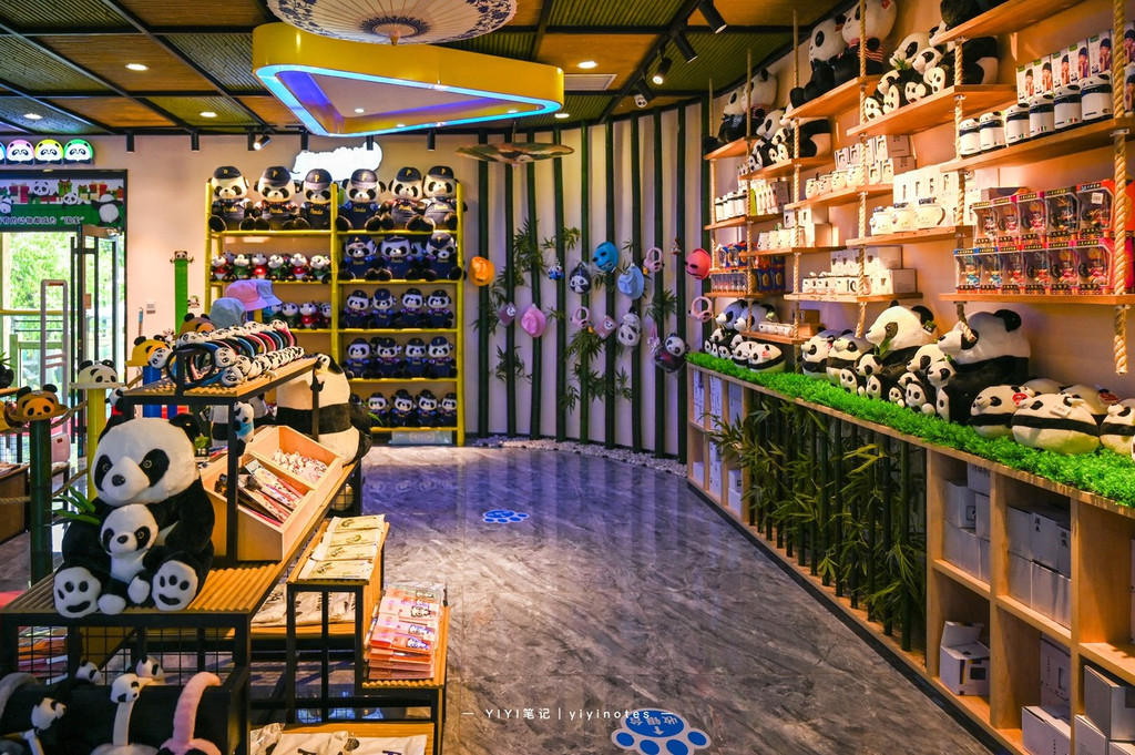 园内内还有专门的纪念版熊猫公仔,整整齐齐的摆放在一起,小朋友们对这些娃娃肯定爱不释手。