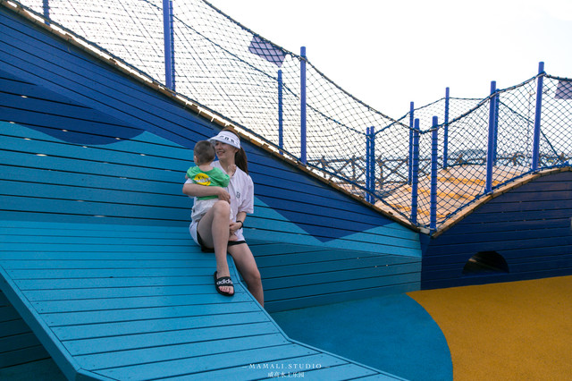 水上乐园沿海建的无动力儿童乐园区,孩子们摸爬滚打玩翻天。