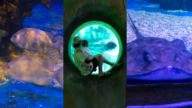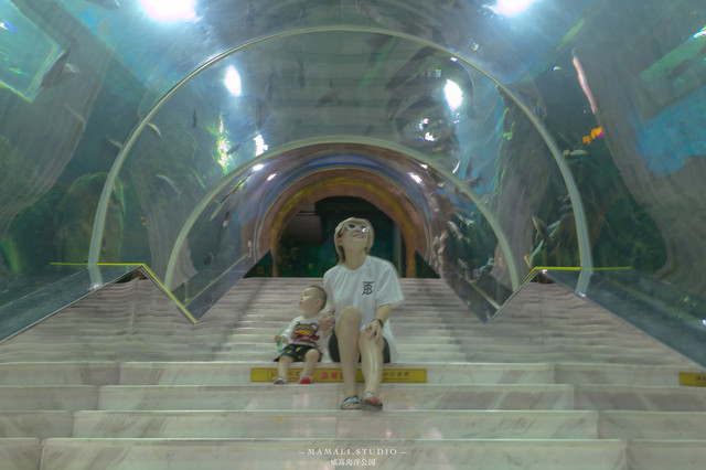 走进海洋馆,最先进入的是一个透明穹顶,五颜六色的鱼群在头顶游过,它们一点也不怕人,抬眼望去非常梦幻,这个地方拍照也是非常赞的!