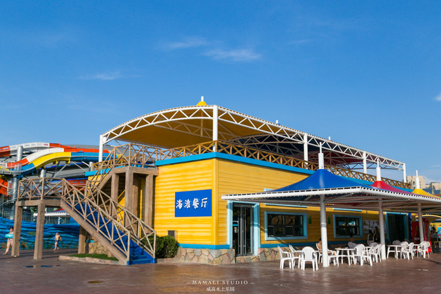 在威高水上乐园一点也不无聊,项目玩累了也有可以去放松的地方。园区的餐厅有丰富多样的美食,吃的喝的都是超方便的。