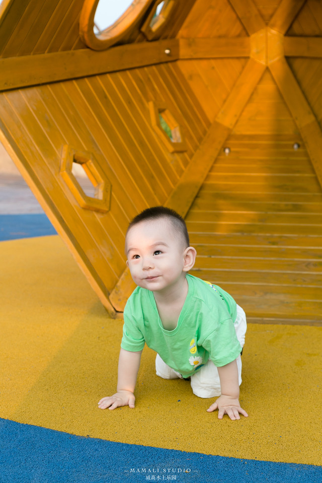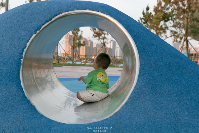 我家KK宝贝最爱的就是蓝色的起伏小坡坡了,他爬上爬下的,玩乐不少了来回!还喜欢铁皮小滑梯,对于刚满一岁的他来说,这个高度和坡度也是刚刚好的。