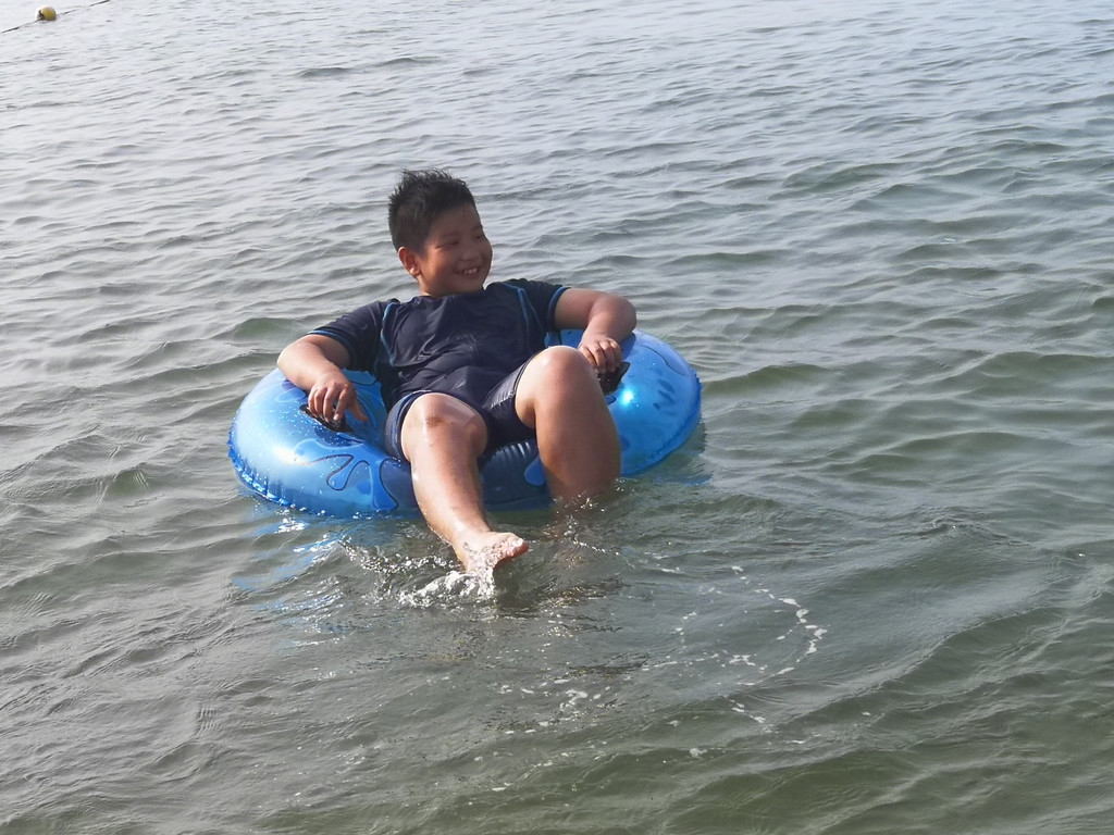从岛上回来,这两个小朋友就迫不及待的要下海玩耍