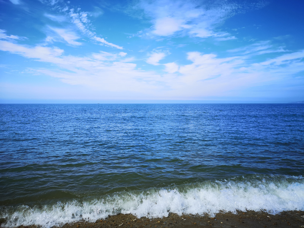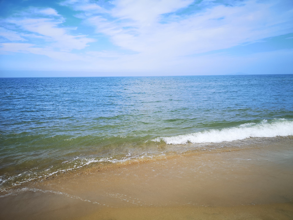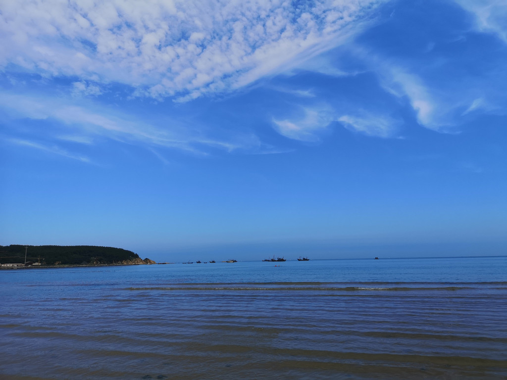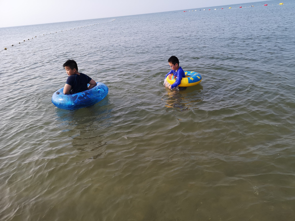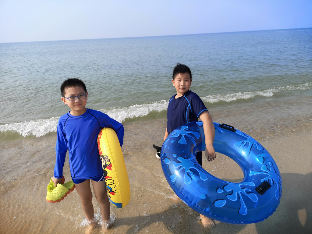 早饭后孩子们就要来海边,清晨的海水格外蓝,配上威海特有的蓝天白云,这就是属于威海的颜色。