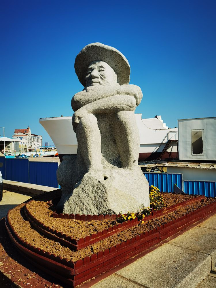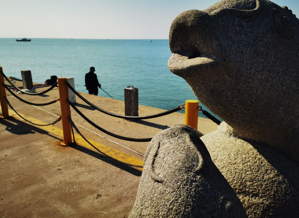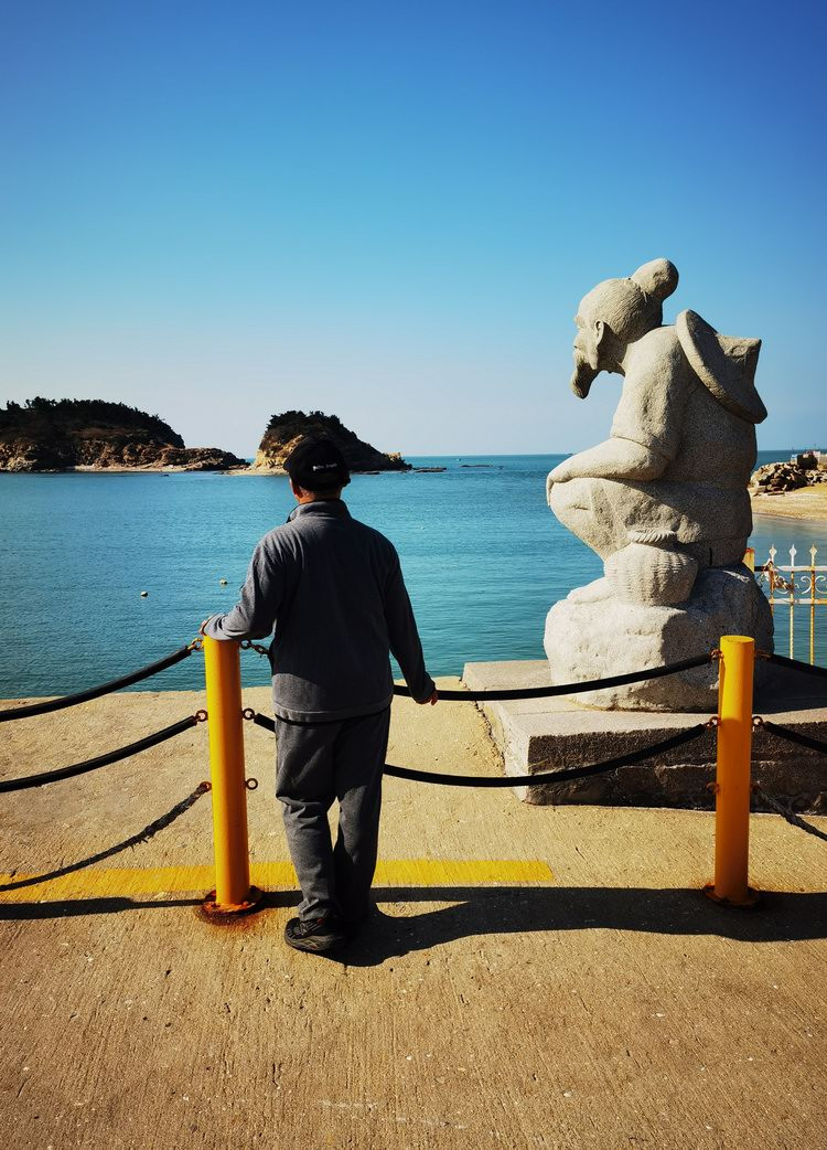 小石岛景区的海边,有很多雕塑。