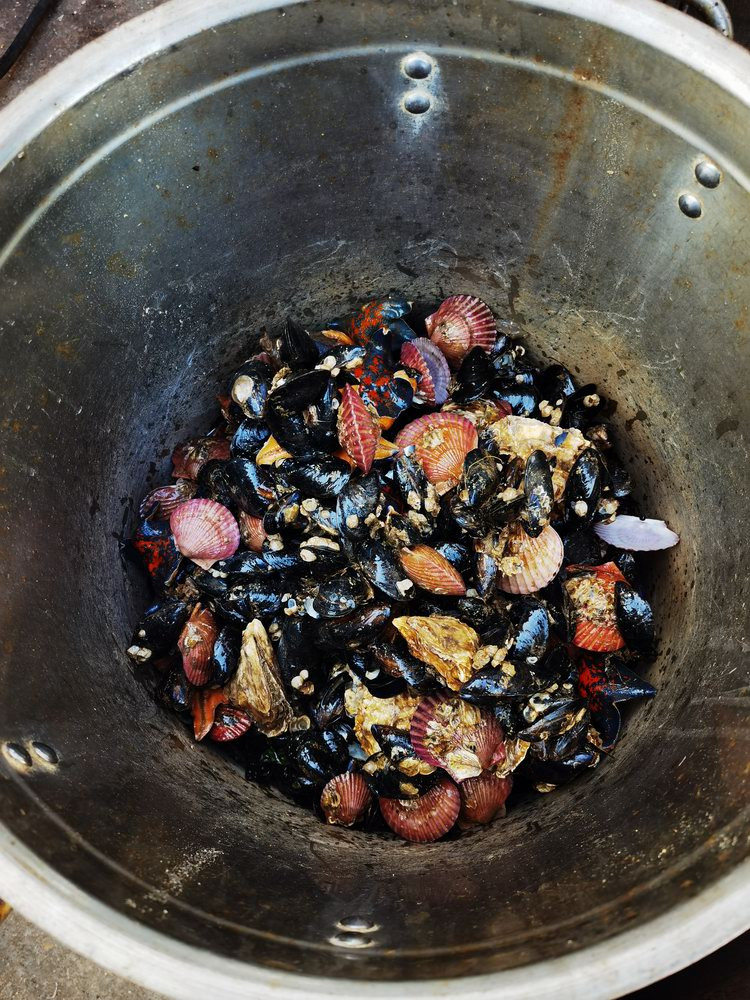 收获的海鲜,现场煮食。