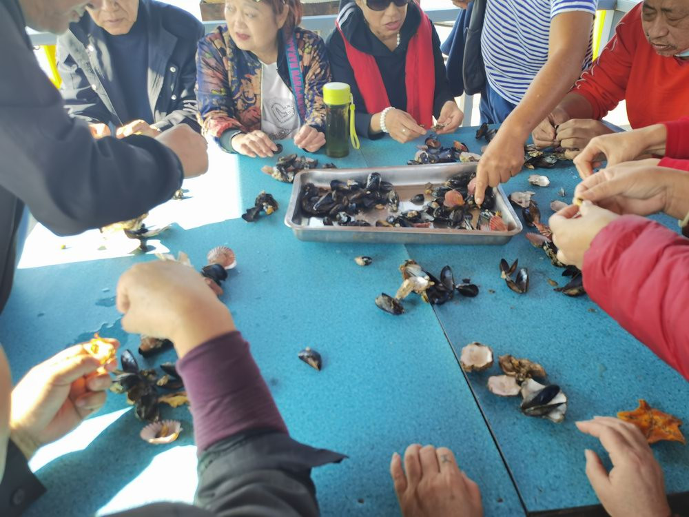 收获的海鲜,现场品尝。