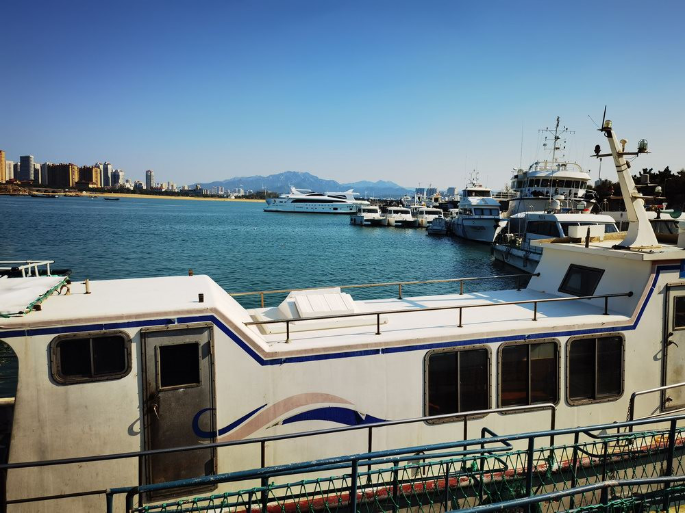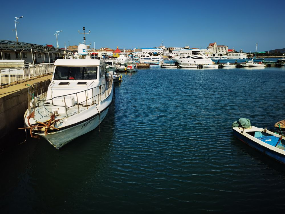 小石岛港湾里停泊很多游艇,供游客出海游览和海钓。