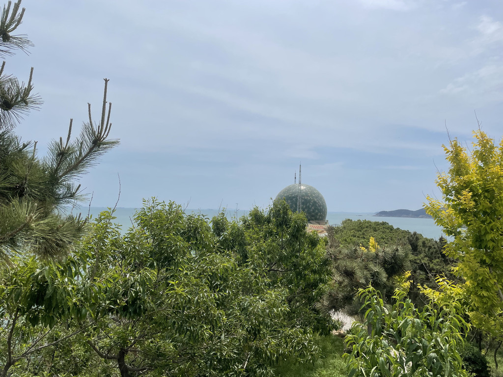 按美女指的路,往前走第二个路口,看到一个栏杆,直接开进去,栏杆自动起杆,继续前行没多远就到了一号观景平台-看海,这里离江古咀很近,可以看到江古咀旁边的那个大圆球,平台边有条小道也可以从这直接走到江古咀。在导航上进行报错,但直到本游记成文时,导航上选择“猫头山1号观景平台”仍是错误的,建议驴友们积极报错,促进导航改进,方便后来游客。