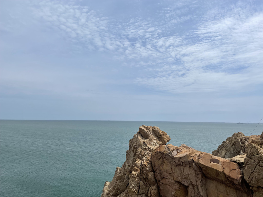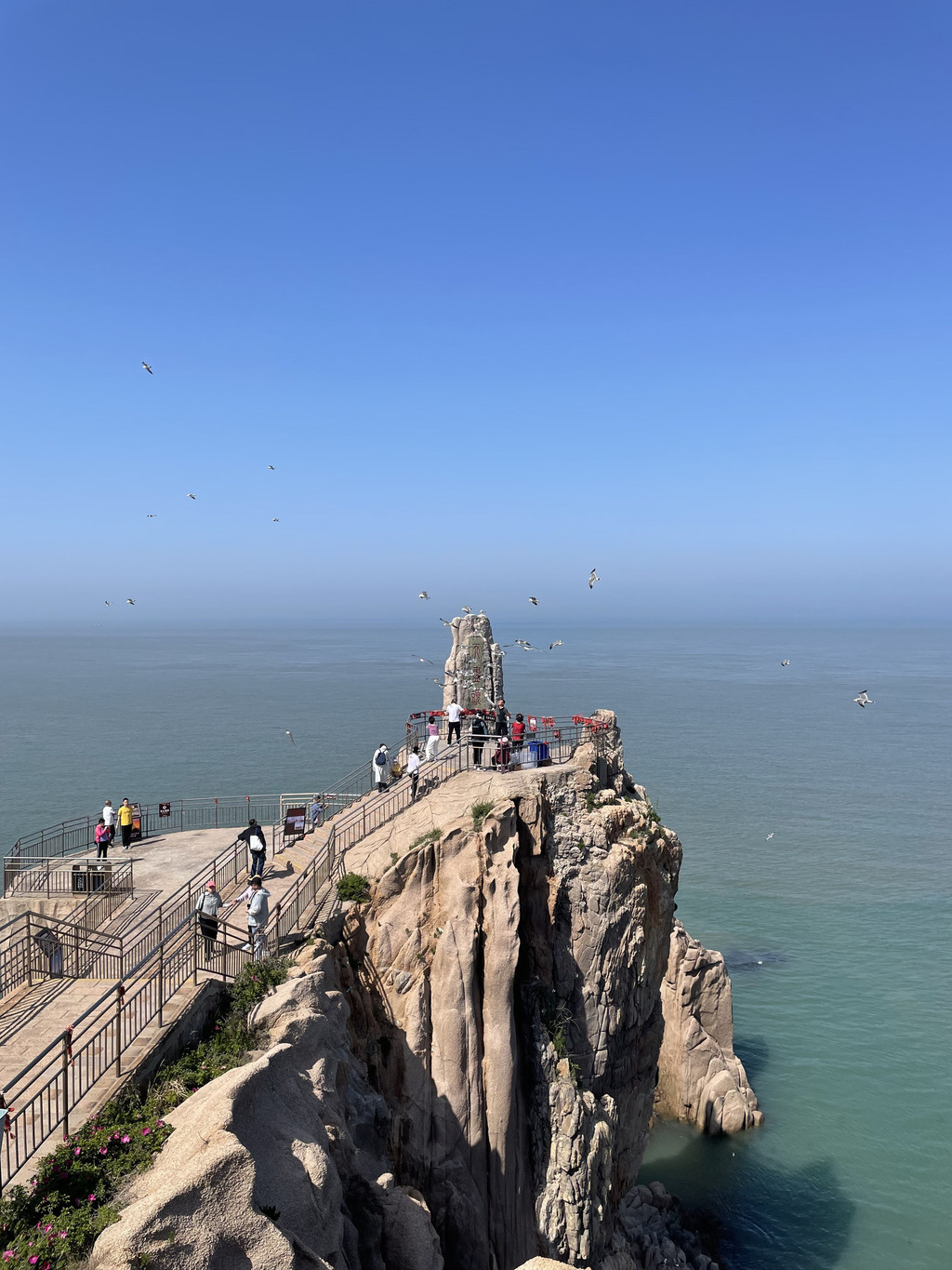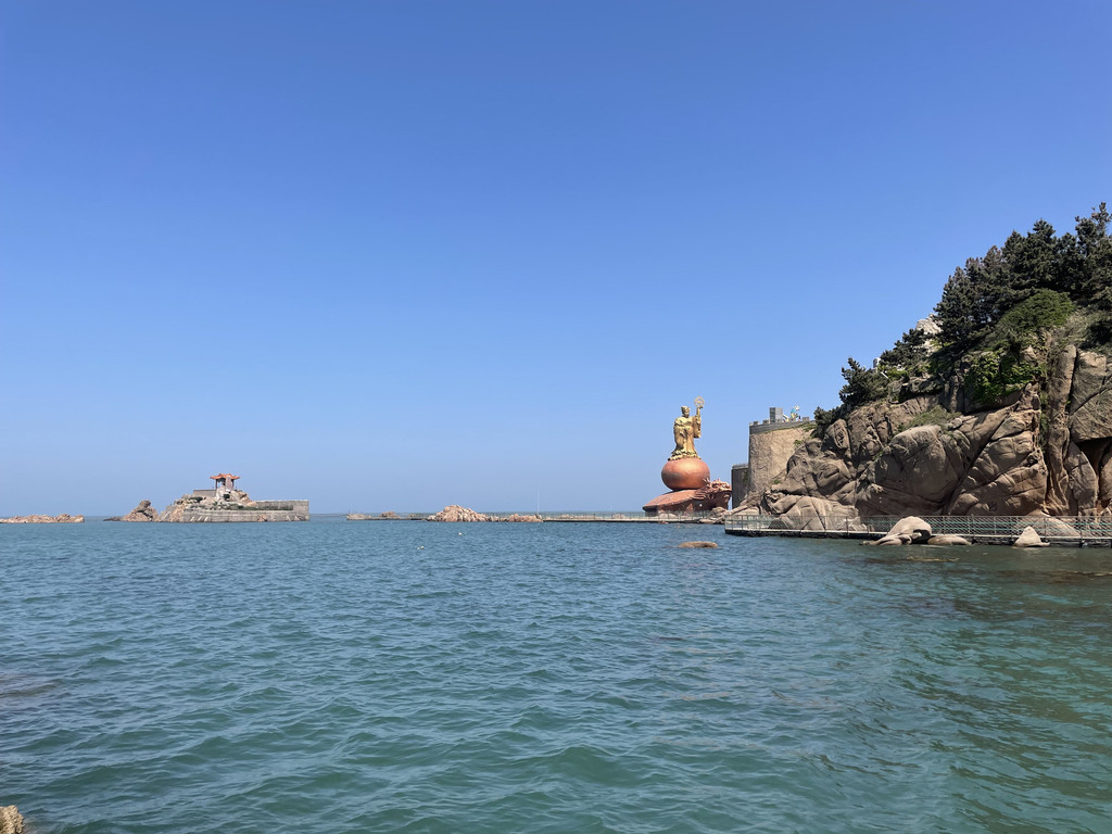自驾进入景区,顺着旅游路线开到一停车场,旁边有几个大殿,附近有洗手间,这还是个景区旅游车停靠点,把车停下,这地叫福如东海景区。问了一下工作人员怎么游玩,按着指引,顺着旁边长廊的台阶向下走去,走到海边,景色优美,海水清澈,海上有成群的海鸥在飞翔。沿着景区栈道,漫步海边,心情舒畅。逛完海边风景,上台阶,走过几个大殿,这些大殿应该都是后建的,比较空旷。回到刚才停车的地方,用了将近1个小时,开车继续向天尽头出发。