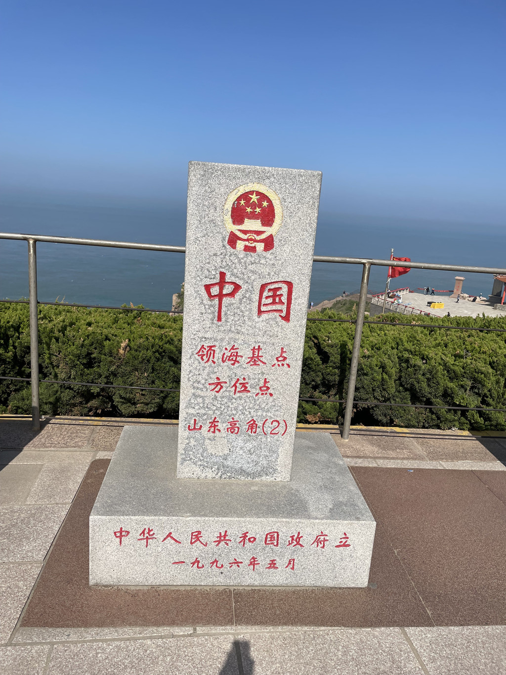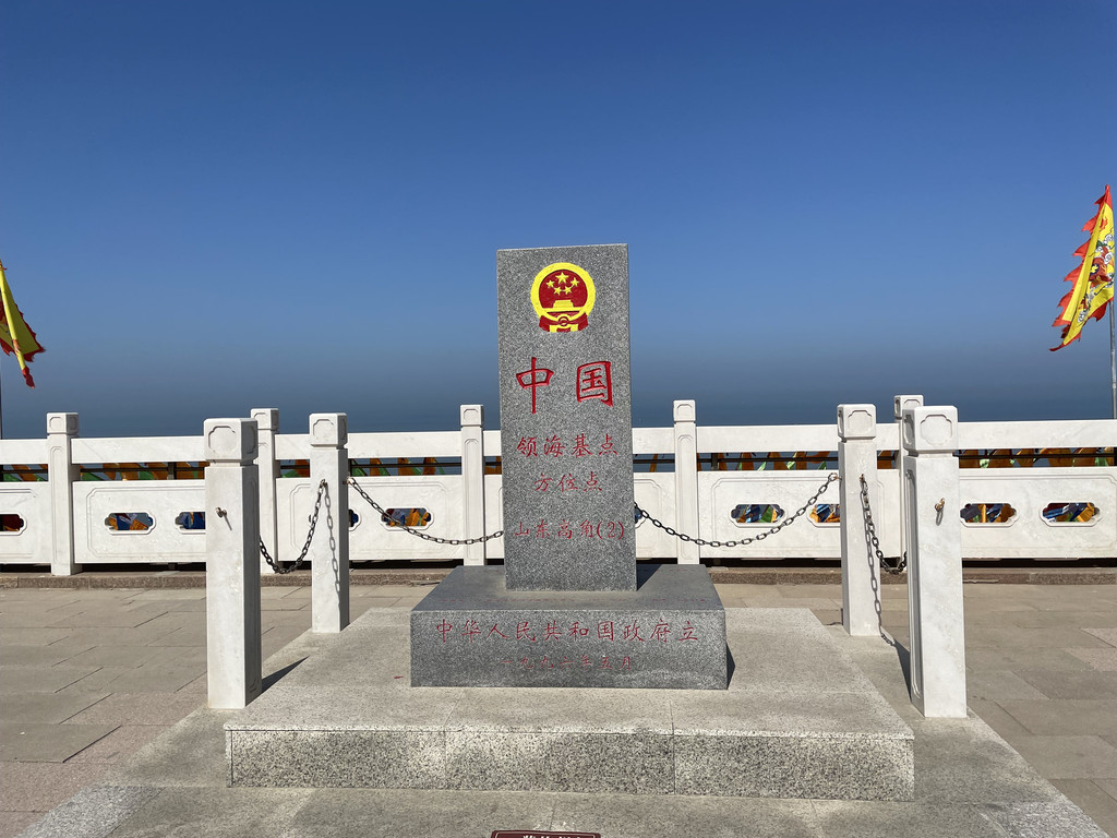 在成山头立有两座“中国领海基点方位点”的石碑,立在不同的平台,可能是不同时间所立,但下面所署日期却是一样的。