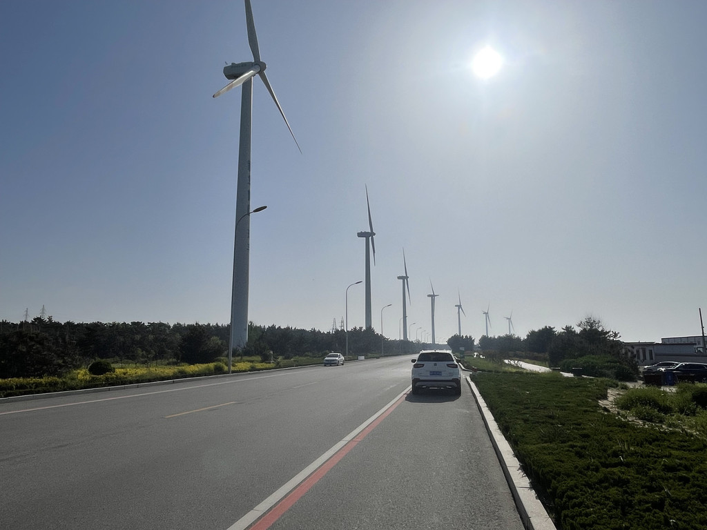 从东天门到那香海景区约30公里,需40分钟左右,沿路能看到耸立在马路边的连绵成排的大风车(风力发电机),非常出片和壮观,我也禁不住停车拍照。