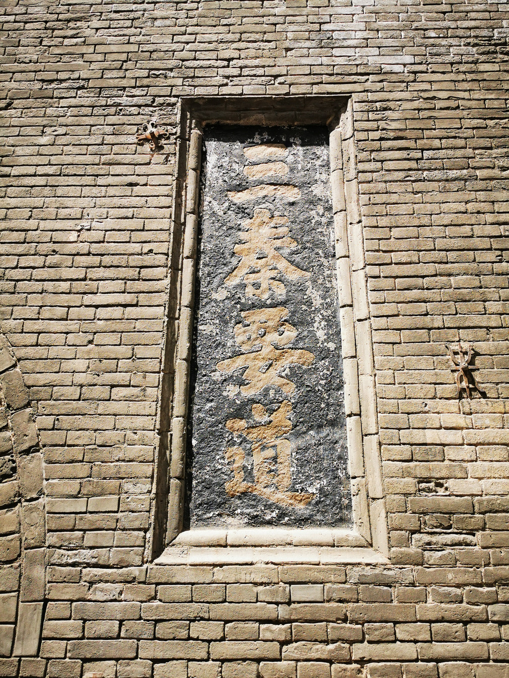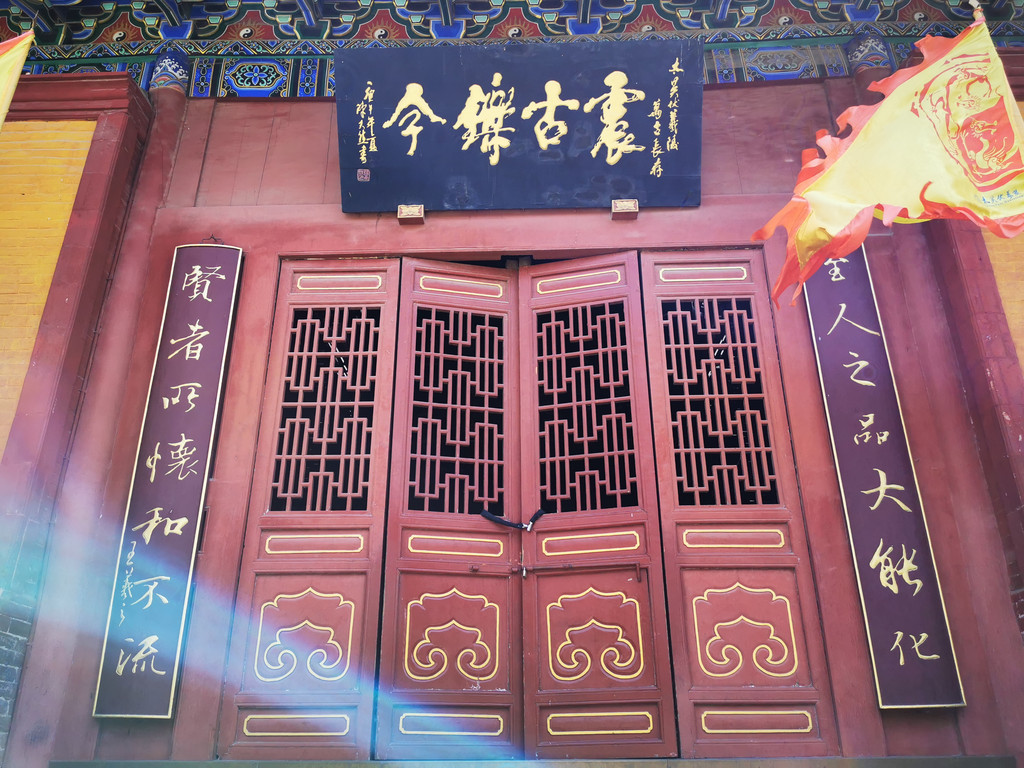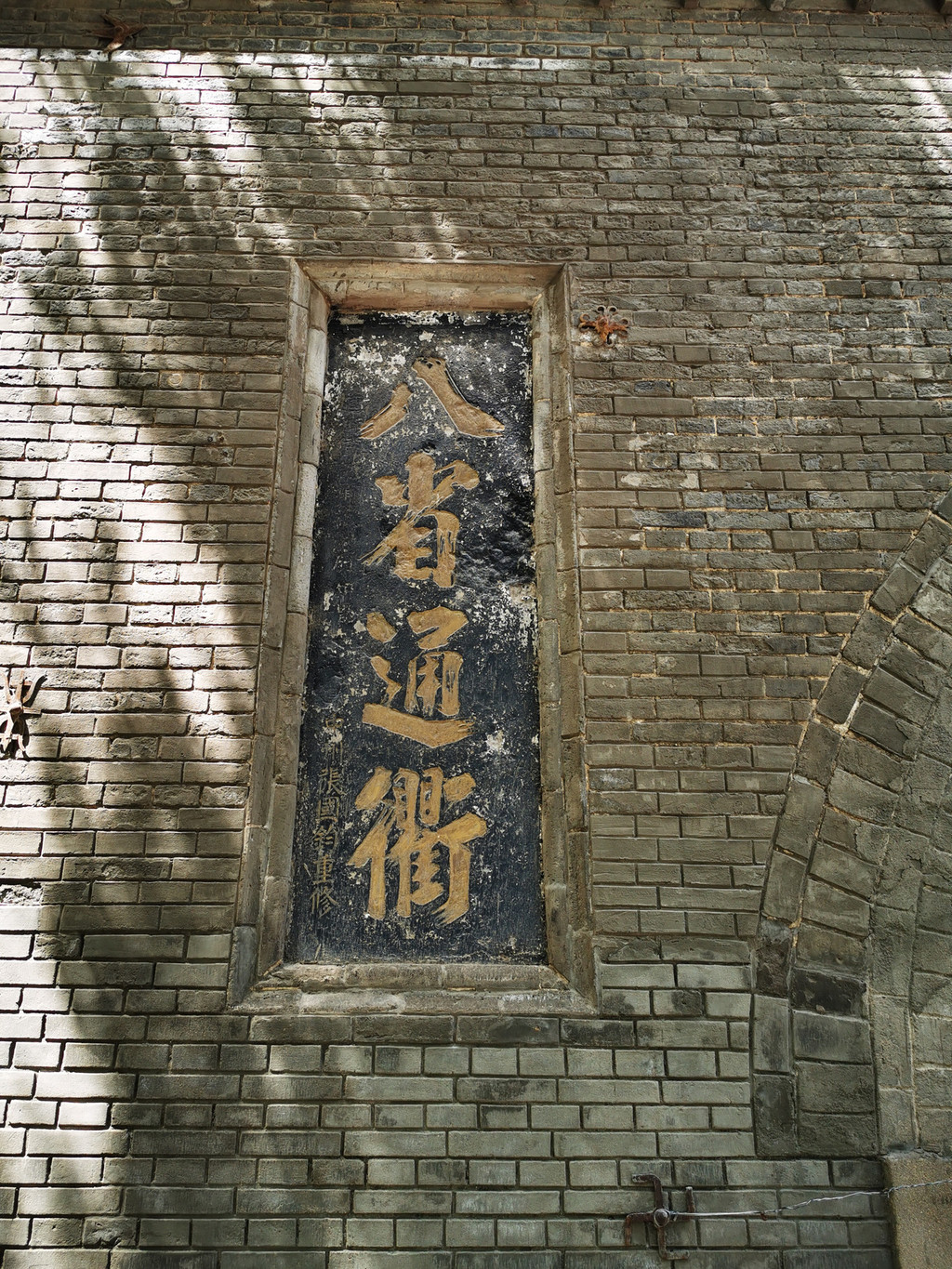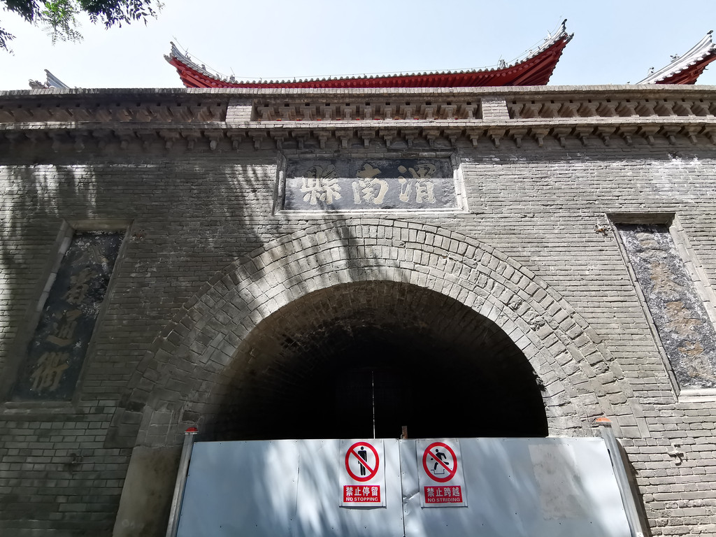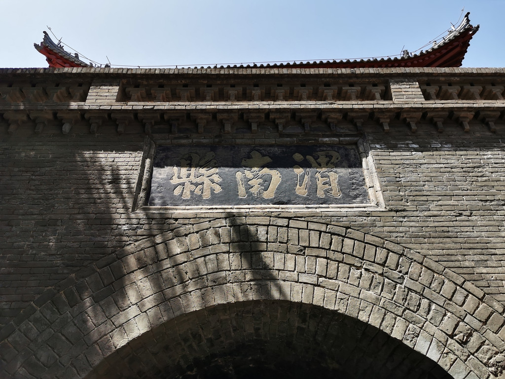 在鼓楼下方的正中间,有南北向的券形门洞,门洞上方镶嵌着“渭南县”三字题刻,门洞两侧分别镶嵌着“三秦要道”和“八省通衢”四字题刻,均为光绪初年的渭南知县张国钧所写。这些题刻不仅成为渭南的象征,而且展现了当地重要的地理位置,四通八达,兵家必争。