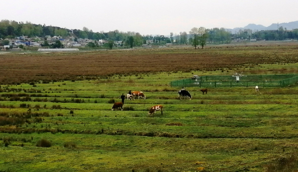 干涸的湖床已成草原,一群群牛羊甩着尾巴悠闲的吃着草。这本是鸟儿的天堂,现在却成了星星点点的牧场,想念小区里一群群叽叽喳喳的小麻雀,麻雀虽小那也是看得到听得到的鸟。