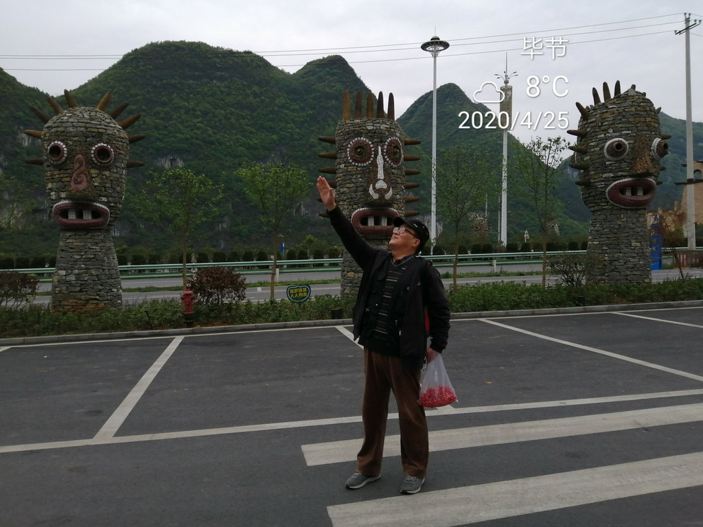 禁不住学着毛伟人的典型姿势造型一张伟照,郎朗诵咏“红军不怕远征难...乌蒙磅礴走泥丸...”大气地右手一挥,自觉很威武!很霸气!只是忘记了左手提着一塑料袋红樱桃,有损形象,终成遗憾......