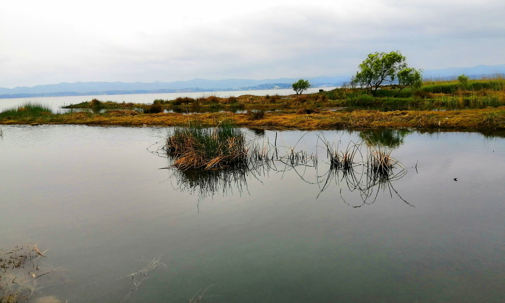 开着车走走停停,发现一处被当地游人破开的围网缺口,毫不犹豫地随之溜将进去,与草海来一次亲密接触。