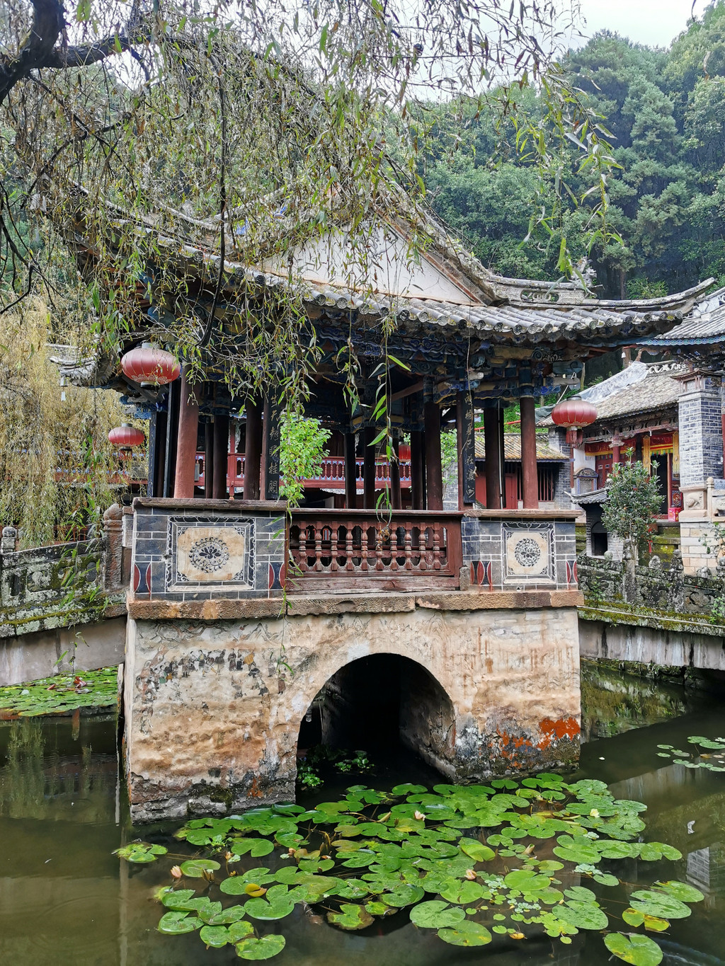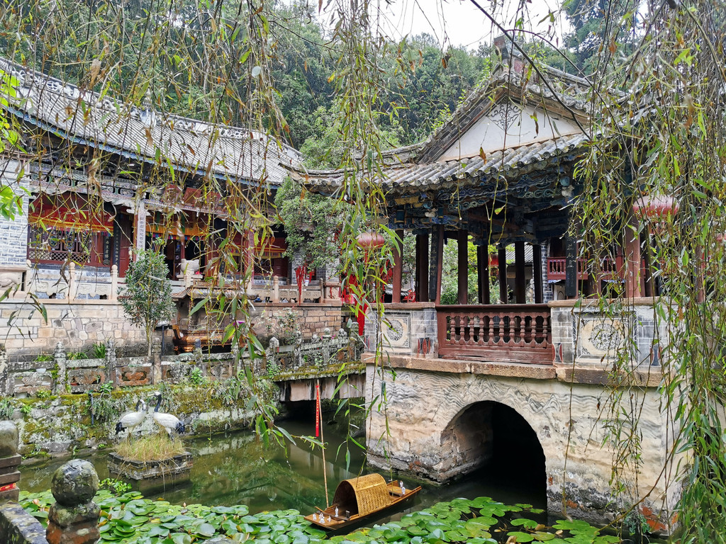 池畔垂柳依依,如是春天,柳影如烟映池水,花俏枝头清幽境,那幅“龙池烟柳”景观是著名的巍宝山八景之一。