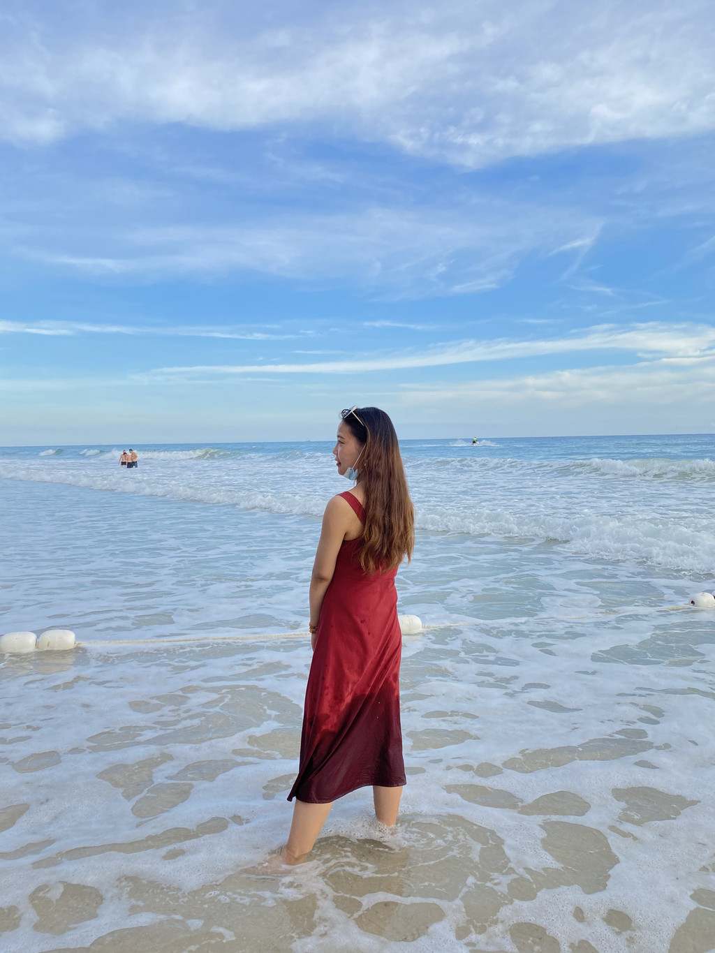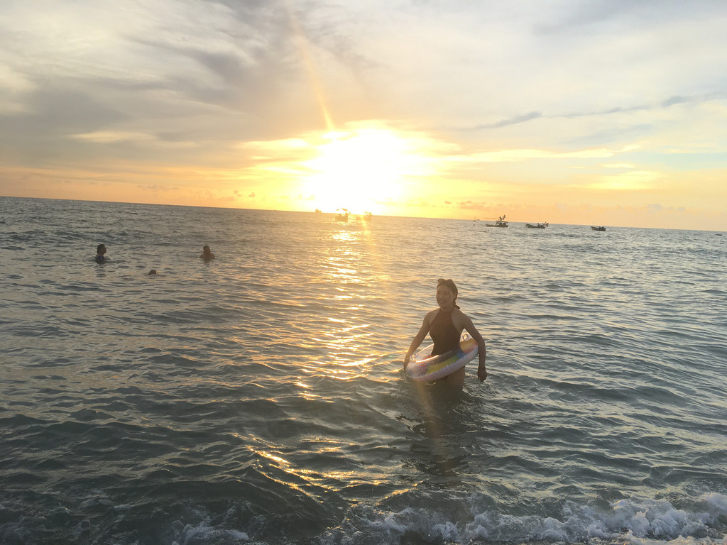 下午:2点左右,就联系了潜水的工作人员(荣华潜水),潜水100/人;拍照给了我们优惠160元/人(10张照片,1段10秒的视频),三点的时候就来海边接我们去潜水----5点之前送我们去民宿拿行李,民宿老板开车送我们去渡口的----回到北海六点过了换上泳衣就去沙滩玩耍