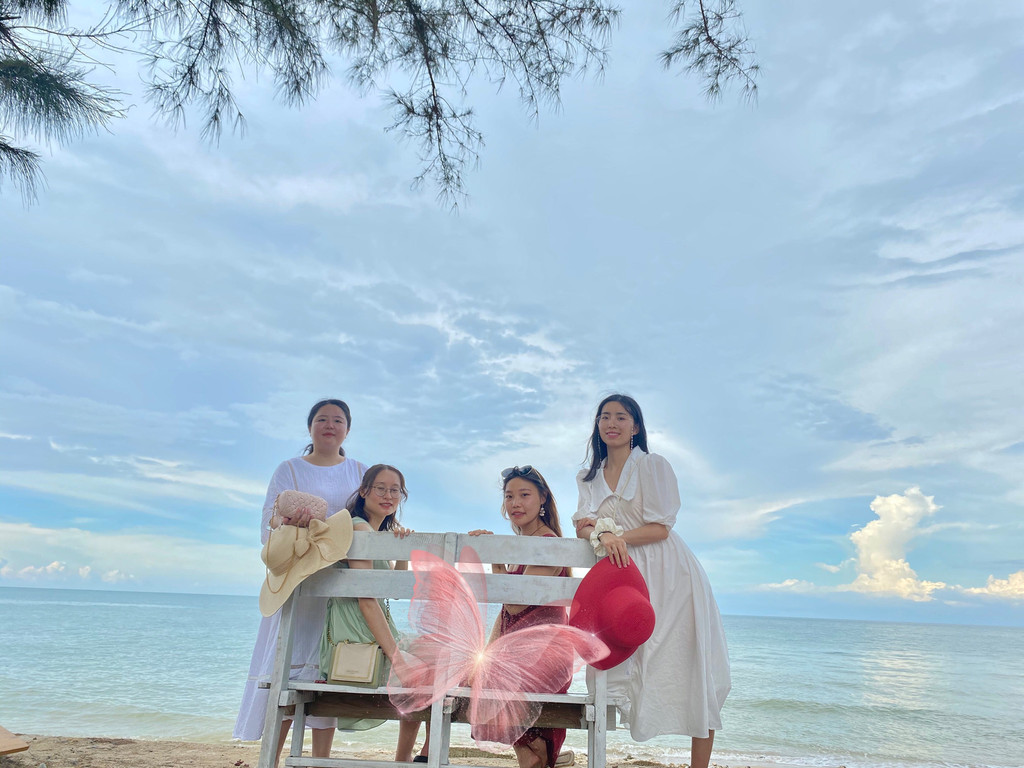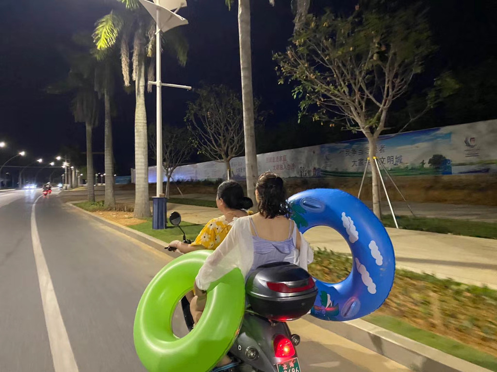 午餐后,拿上行李,朋友就开车送我们去渡口,人山人海,有点闷全程也还一直带着口罩,一个半小时的路程,(敲重点:船票一定要提前购买哦,可以关注涠洲岛景区的公众号实名认证去购买哦),下船以后,民宿的车子过来免费接我们来着,到了酒店我们放下行李,稍作收拾以后就骑车酒店的嘟嘟车(嘟嘟车30一天)去贝壳沙滩打卡啦;去海边捡贝壳,拍照。然后去看日落玩水,玩的不亦乐乎,玩的筋疲力尽,晚上回到酒店提前点餐,就先去洗漱去了,收拾完刚好下楼吃饭,每个人的胃口大开,哈哈,四个小女生吃了很多。