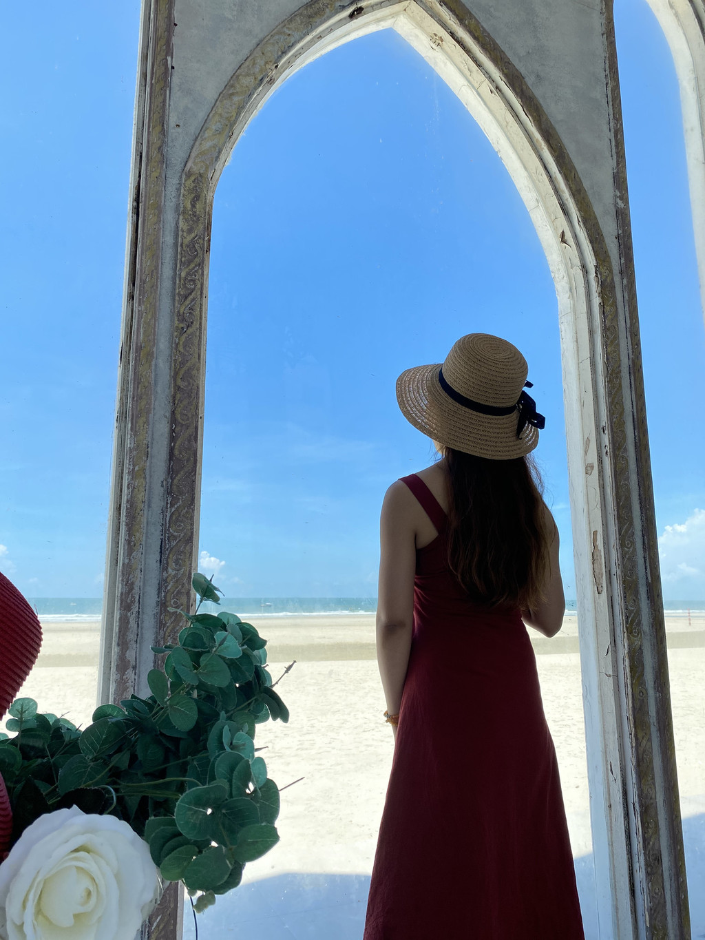 登机--呼呼睡大觉--降落(大概是8点过降落的,降落时间提前了);瞬间变天,一片乌云,大雨来临,还担心着我们的出游,结果出机场的那一刻,已经雨过天晴了,朋友的朋友开车来机场接我们,直接到酒店(北海橡树彼岸度假酒店),还有一位闺蜜就在这边,所以一大早买了新鲜的海鲜,在厨房给我们准备美食呢。我们赶紧收拾行李,换衣服,由于行程比较紧张,休息片刻就去海边打卡啦。中午几乎没有人,太阳火辣辣的,沙子很烫脚,拍照到11:30,我们就赶紧回去吃饭去了,因为下午两点左右的船,要去涠洲岛,匆匆回到酒店开启我们的第一顿海鲜大餐了,鲜美,过瘾。