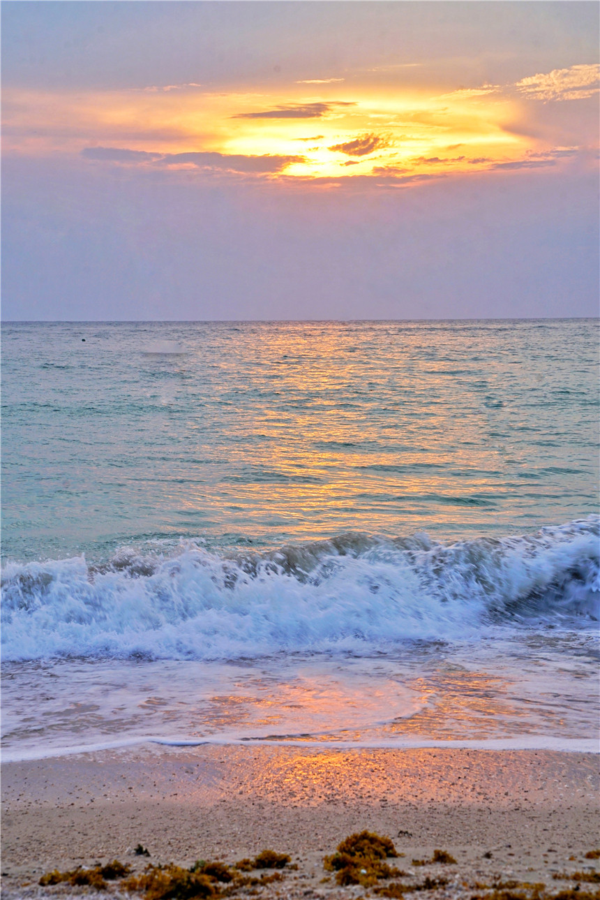 安静等待日落的过程,内心是静谧喜悦的,旅途中的光影变幻,总会带给我们太多的感动,也许这一刻的日落,只是绯红色的夕阳晕染了大海和蓝天,没有火烧云,没有壮阔的落日低沉,可是,看海的季节有喜悦的心情,这不也是旅行的意义吗?