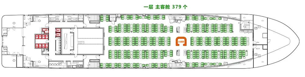 一、北游15主客舱一层位于客船第一层,共有379个座位,票价150元/张