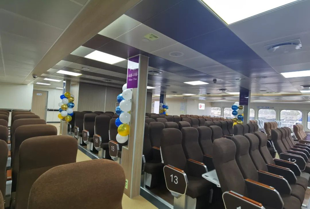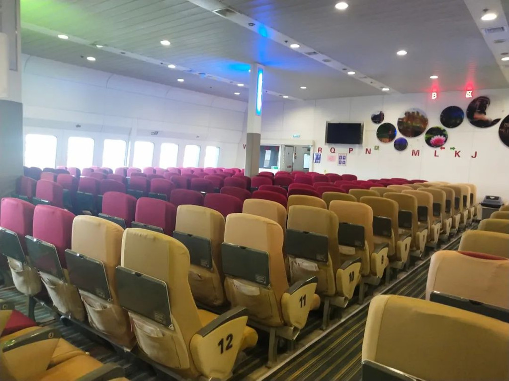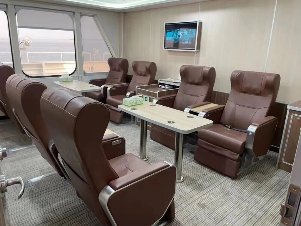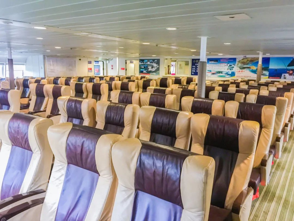 北游28为左右两排座位,左侧可以坐2人,右侧可以坐4人,有比较宽大的玻璃悬窗,可以看到海景。这两艘船均装有非常好的空调系统和电视音响系统,可以缓解旅客无聊的精神。