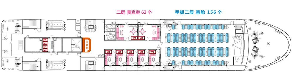 4、船票价格:主甲板客舱: 150元/张