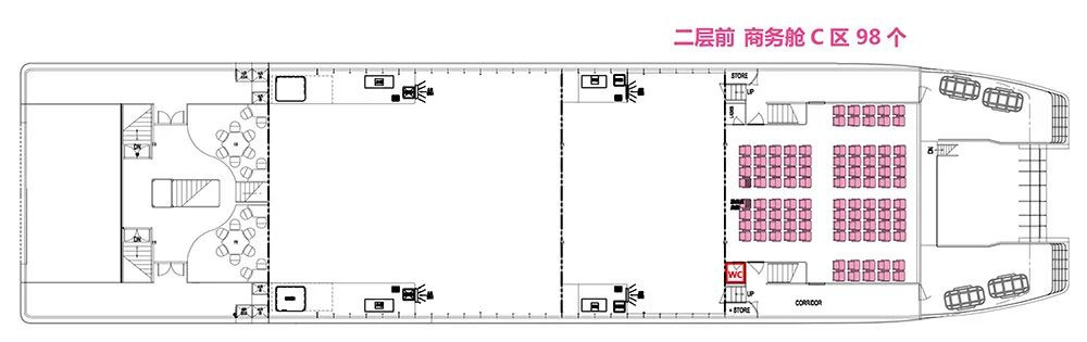 下图为北游16商务舱C区(2楼船头)和D区(3楼船头):180元/张