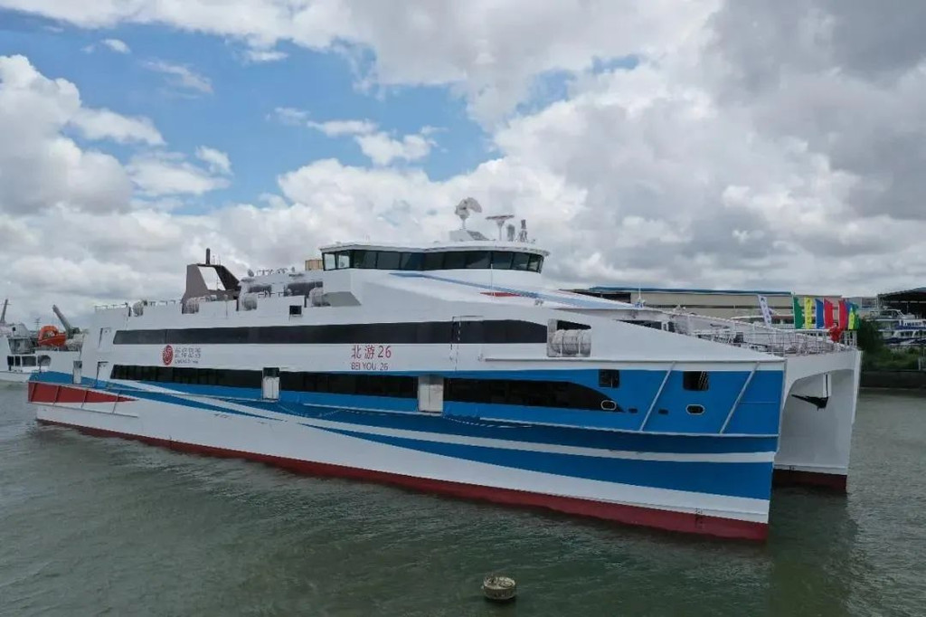 北游26是一艘豪华高速双体铝制商务游船,该商务游船长71.26米、高19米,型宽17米,服务航速29节,可载客1200人,吨位达到3080吨。