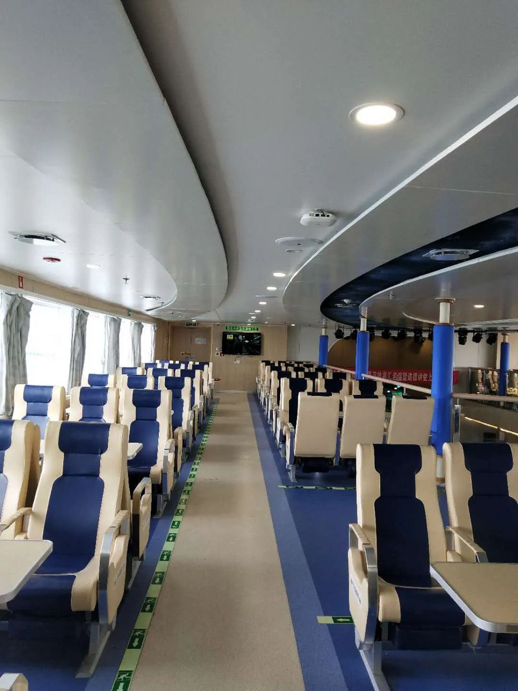 三、北游16商务舱C区位于客船第二层船头 ,共有98个座位,票价180元/张,窗户比较多,看海景很好;