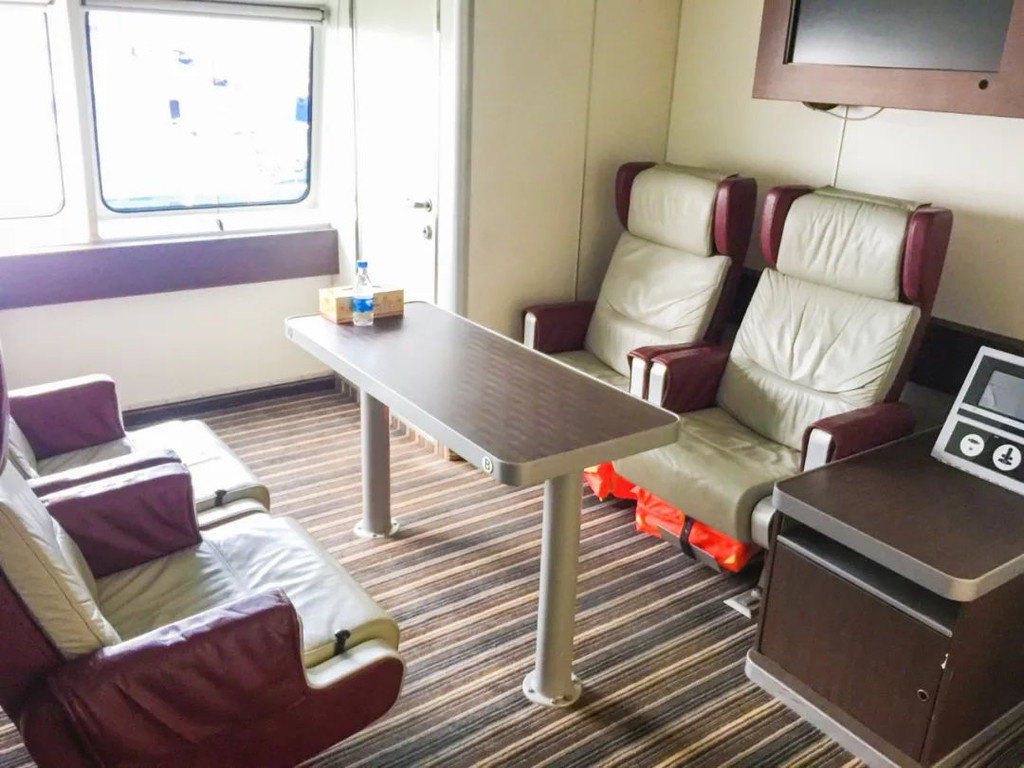 四、北游16特等舱 贵宾房位于客船第四层船头 ,共有20个座位,票价240元/张,高层窗口看海比较清晰;