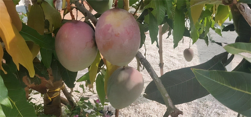 院子里有桂圆树,芒果,木瓜,香蕉等多种水果,熟了就可以吃。