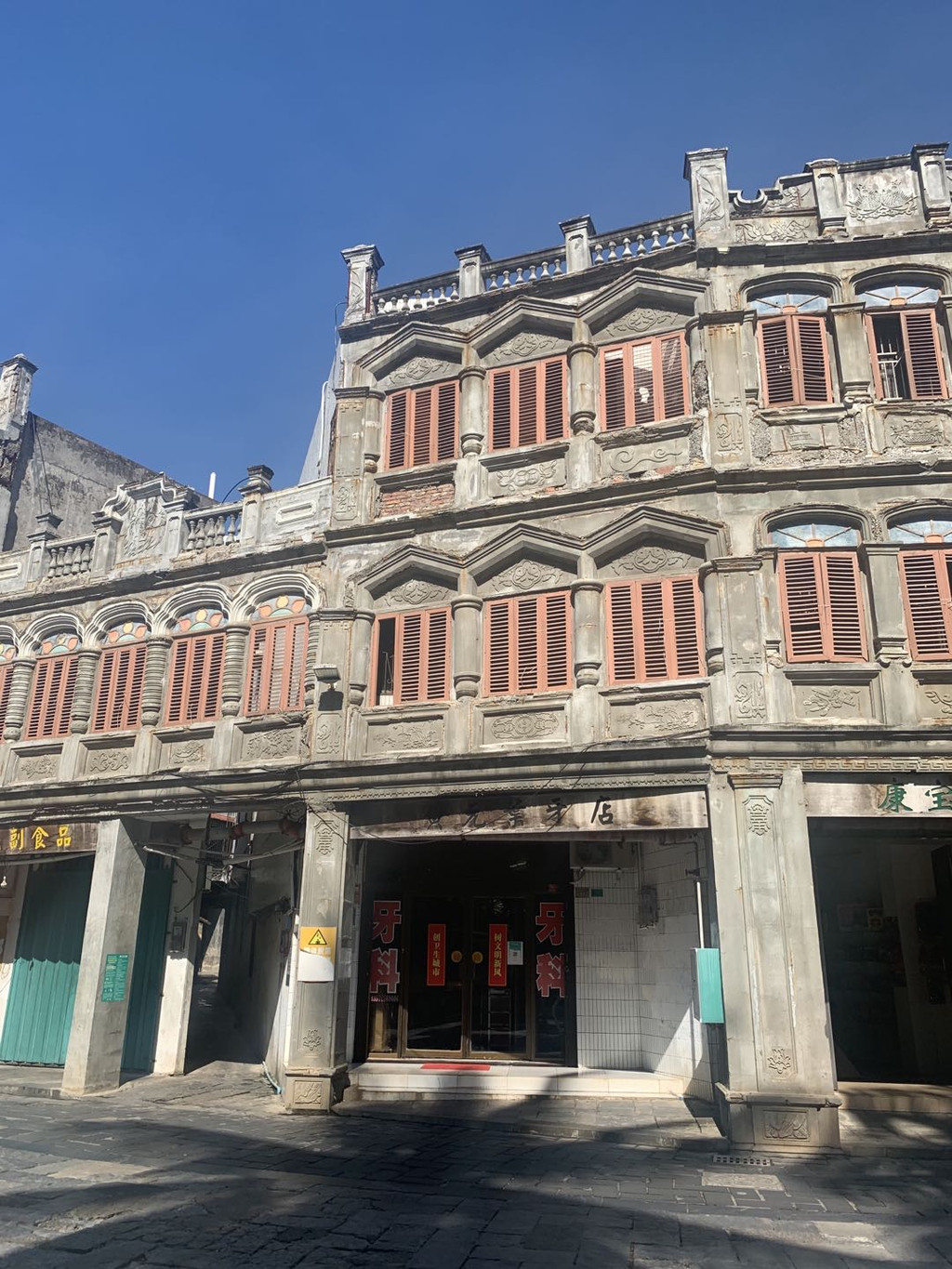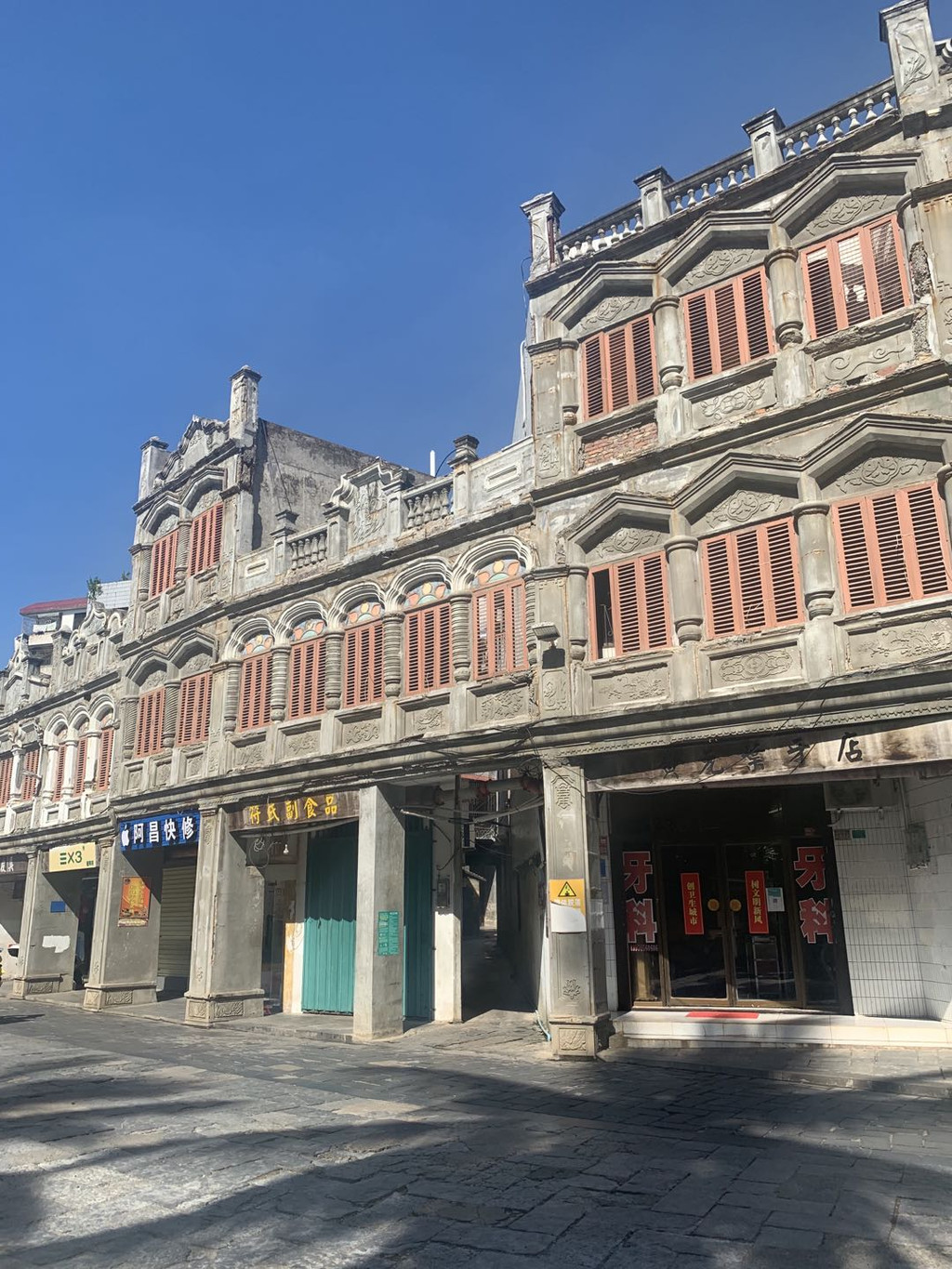 文昌是我国著名的侨乡,钟灵毓秀、名人辈出,有“一里三进士,七里八举人”的美名。这里是宋美龄的祖籍、张云逸的家乡。文南老街位于文昌老城中心地带,沿文昌河而建的两排高三层的洋楼,于19世纪20年代已初具规模,融合了骑楼式样与西式建筑风格,建筑之精巧,装饰之精细忍不住驻足细赏。当年,文昌人下南洋作客谋生,稍有积蓄就在家乡投资置业,一条百余米的老街,凝聚着多少鲜为人知的辛酸故事,乡绅妇孺皆不可忘怀!这里商业气息不浓,较国内某些商铺购物式老街不可同日而语。